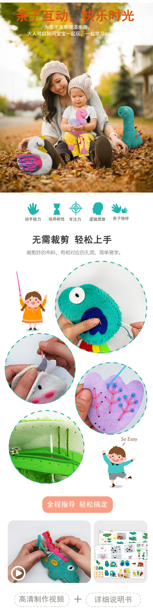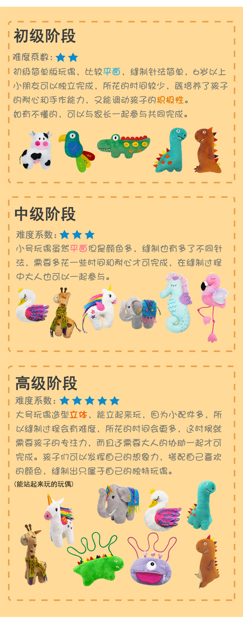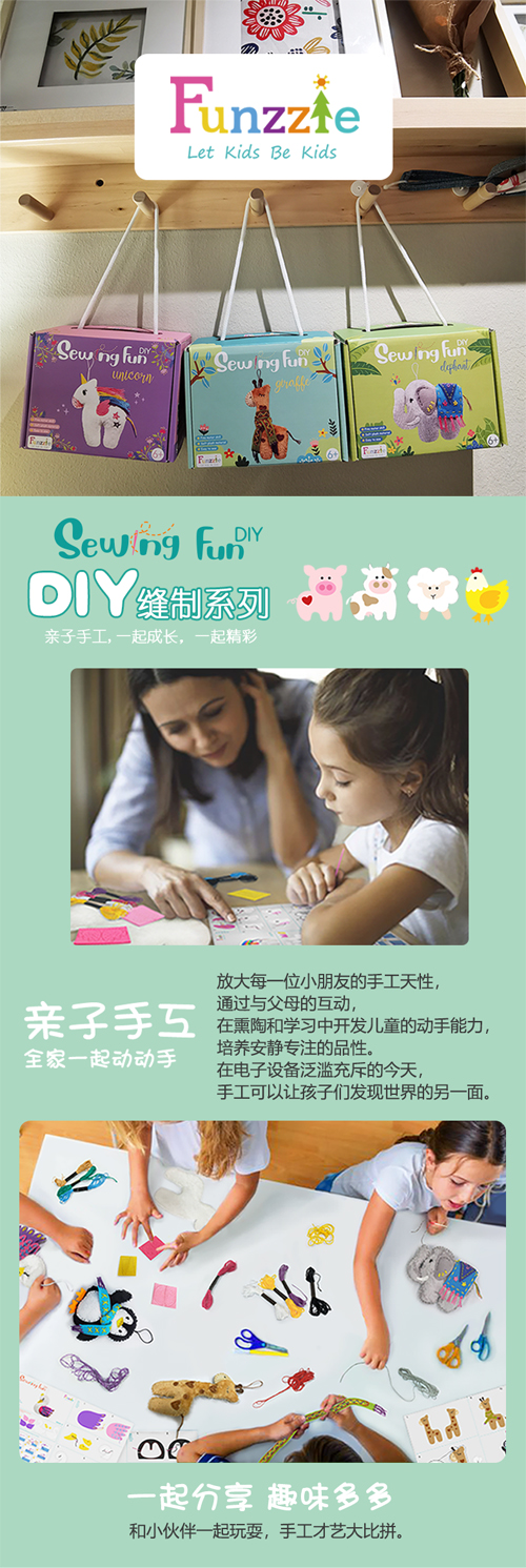 Funzzie儿童幼儿园亲子手工缝制玩偶div材料包毛绒不织布艺作业