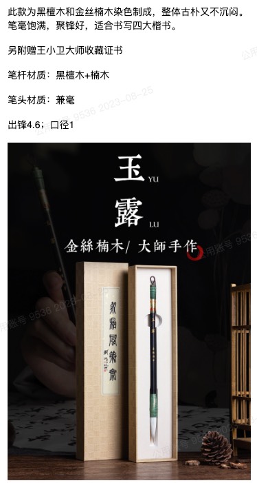 王小卫大师 湖笔 毛笔专业级 善琏湖笔高档 多规格