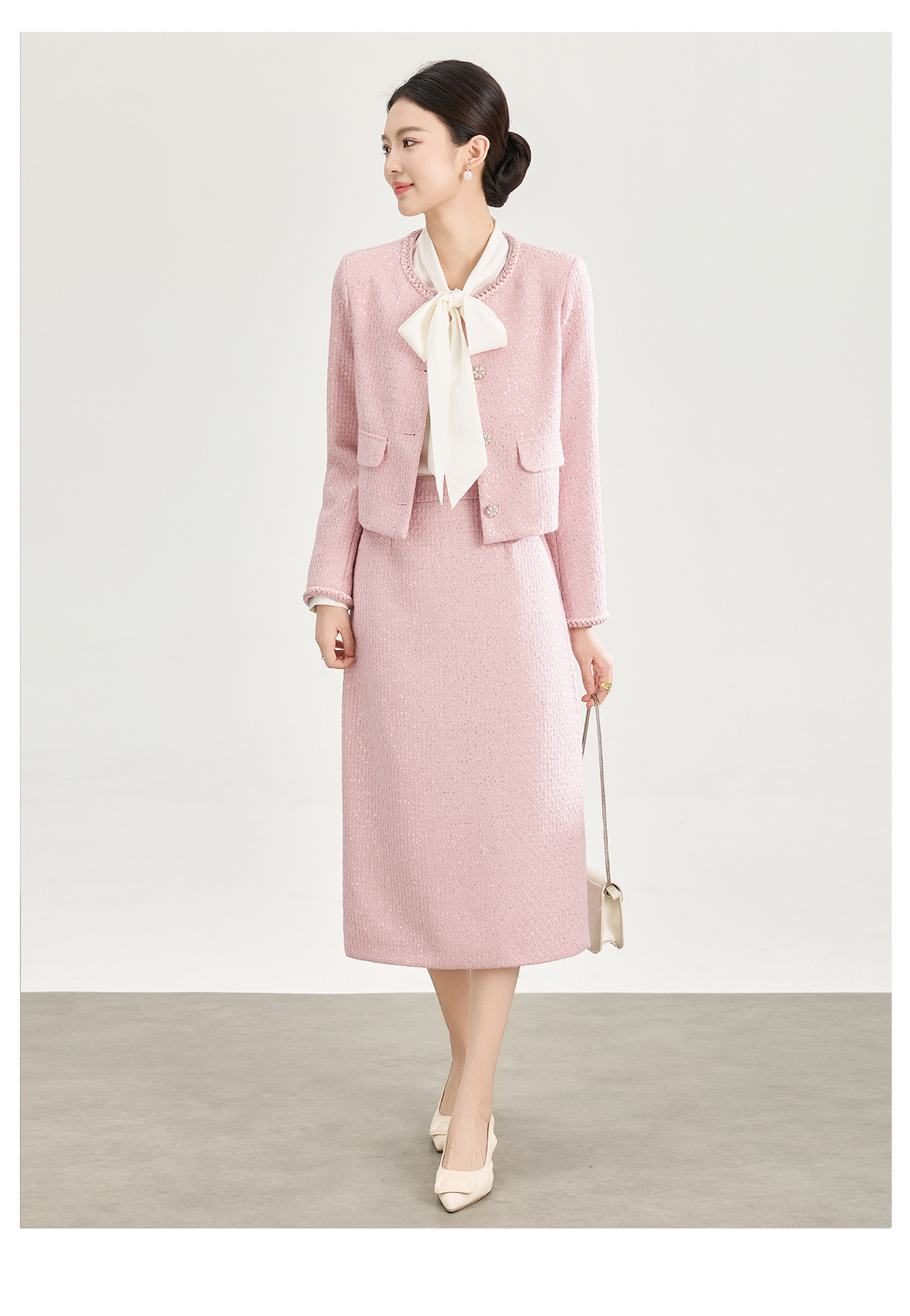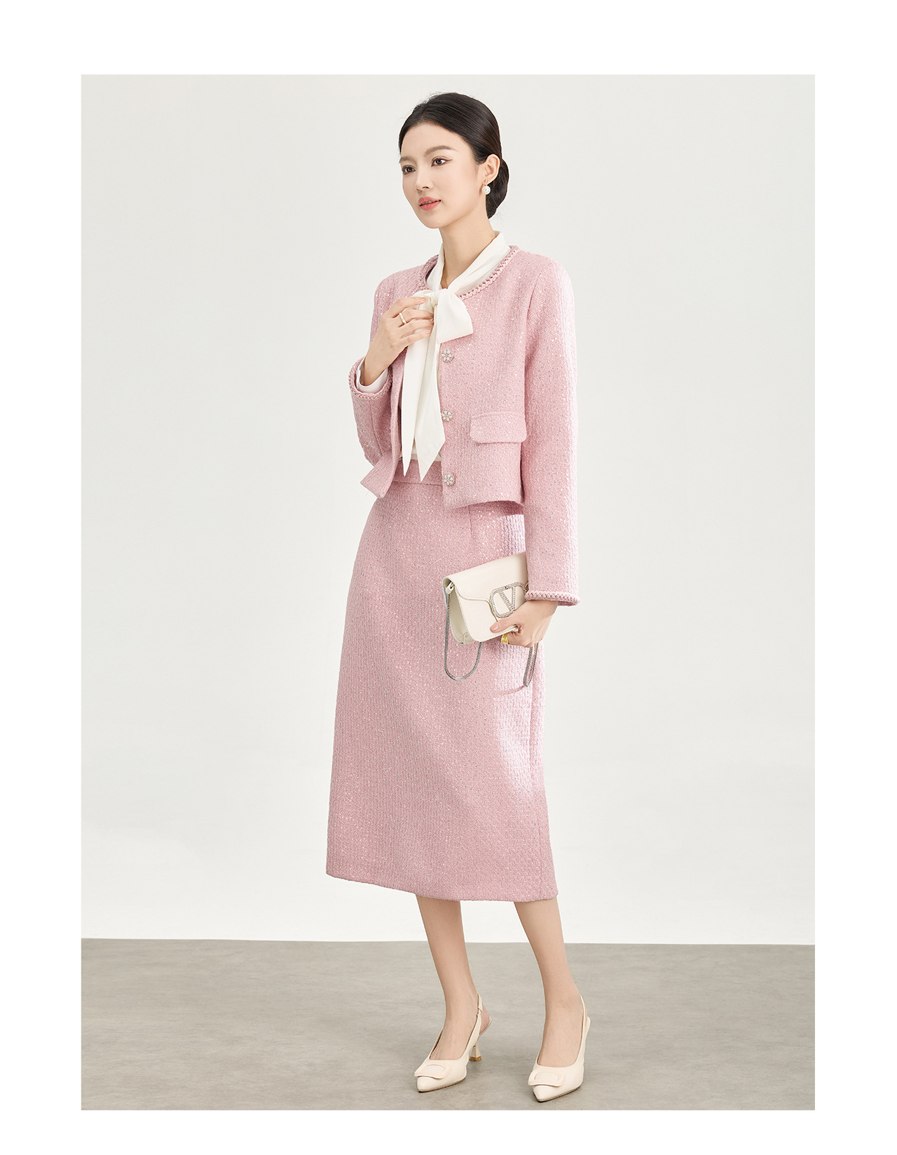 2026春装小香风感亮丝编织粗花呢小香风套装