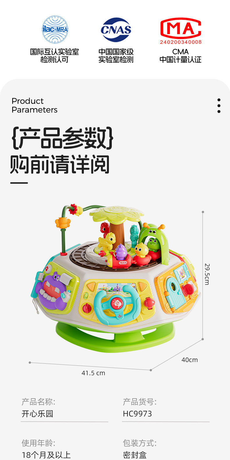 汇乐开心乐园早教百宝箱婴儿玩具1一3周岁益智六面体婴幼儿周岁礼