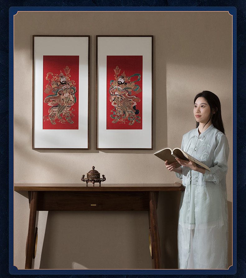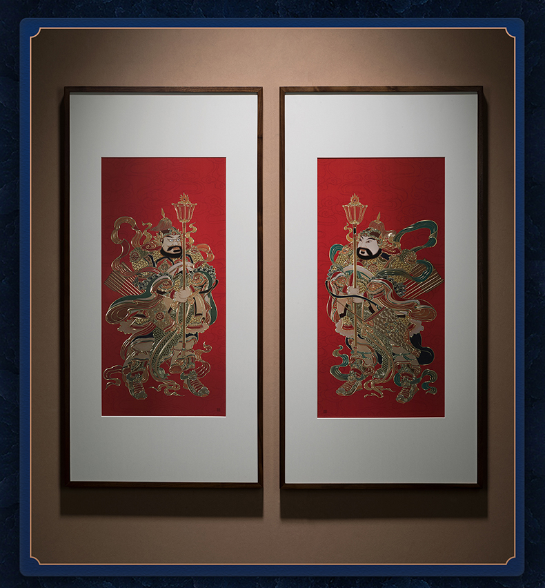 铜师傅 手工錾刻《门神纳福(一对)》客厅玄关画沙发背景墙挂画