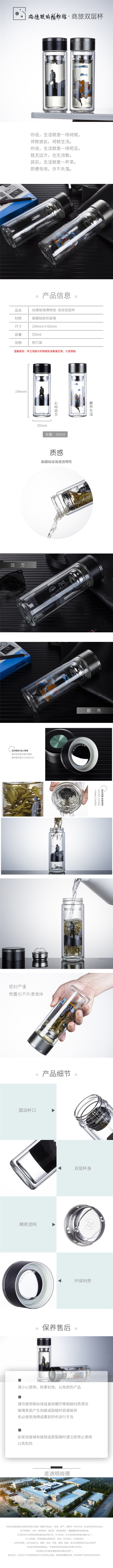 璃海匠心尚德玻璃博物馆商旅郎才女貌双层玻璃对杯300ml