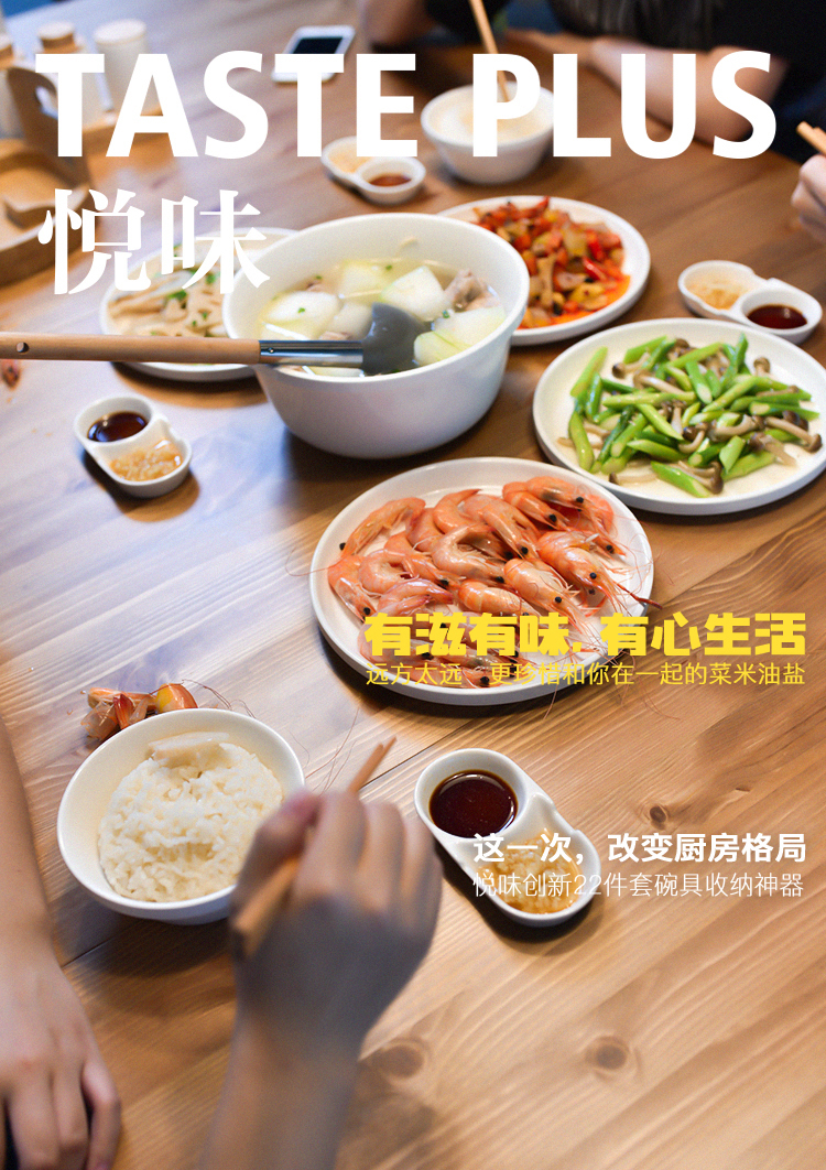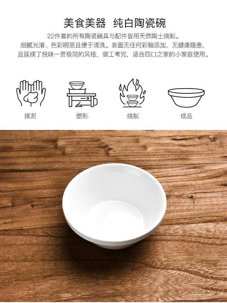 【已下架】积分换购 | 悦味 碗具套装 北欧创意骨瓷餐具22件 碗碟盘子筷子多功能套装[福利品]