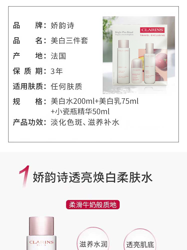 娇韵诗 美白水乳三件套 透亮焕白补水保湿美白淡斑滋润版