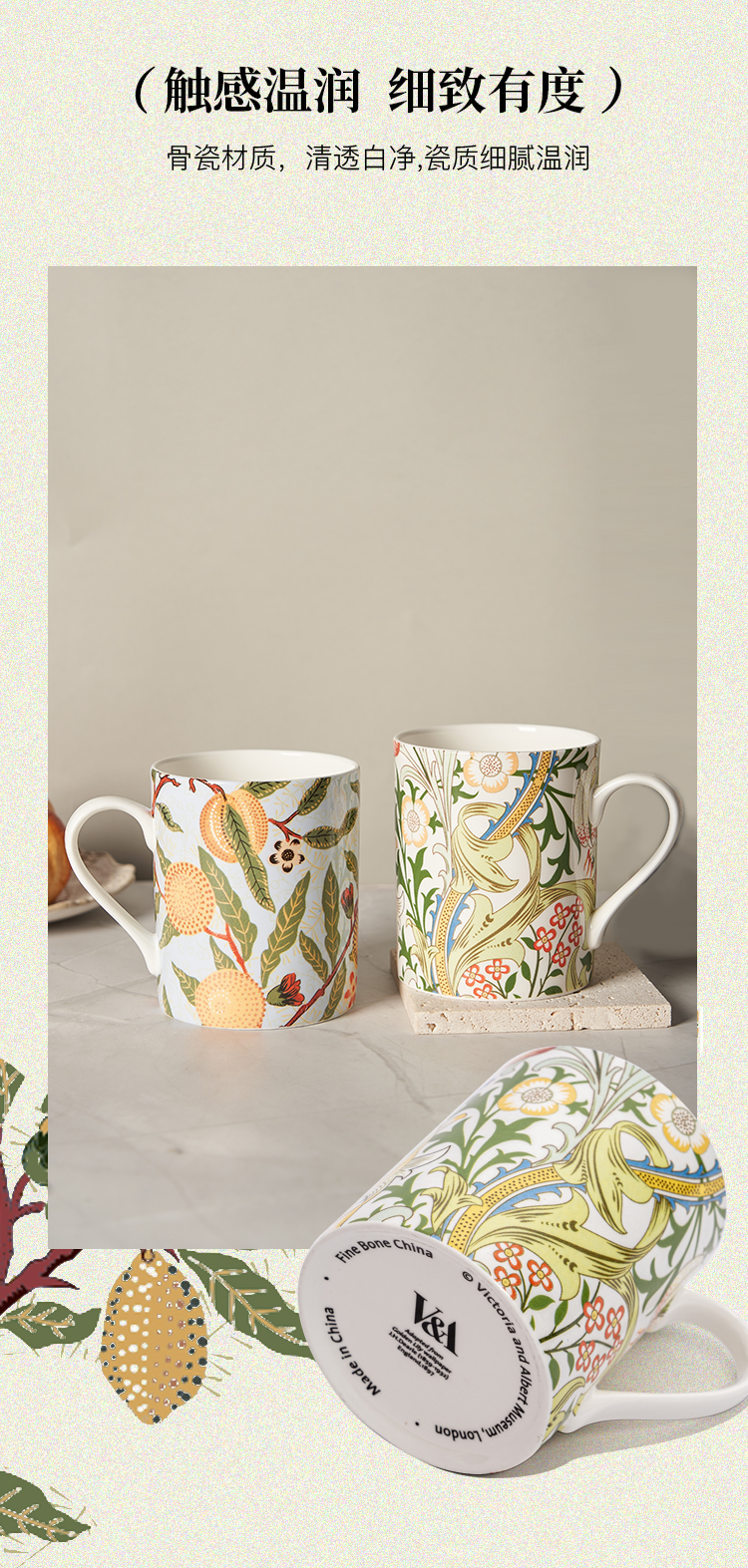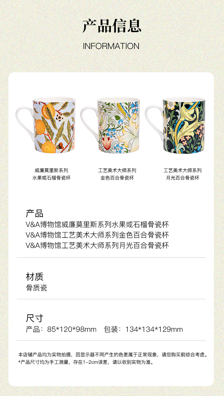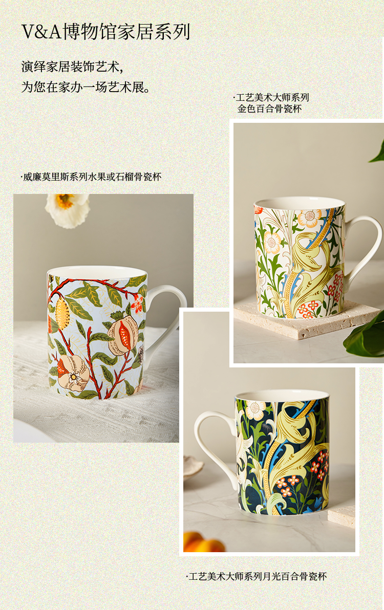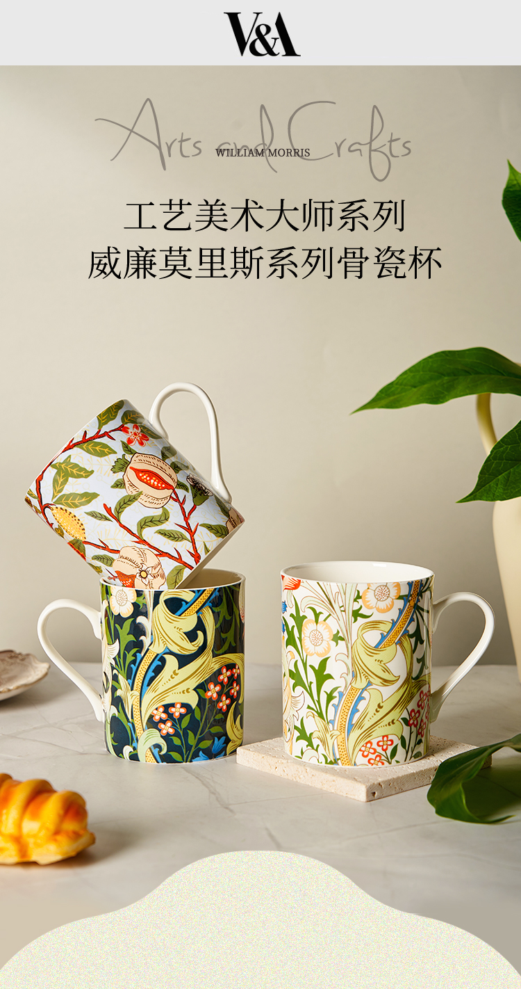 V&A博物馆威廉莫里斯系列 水果或石榴 金色百合 月光百合 骨瓷杯