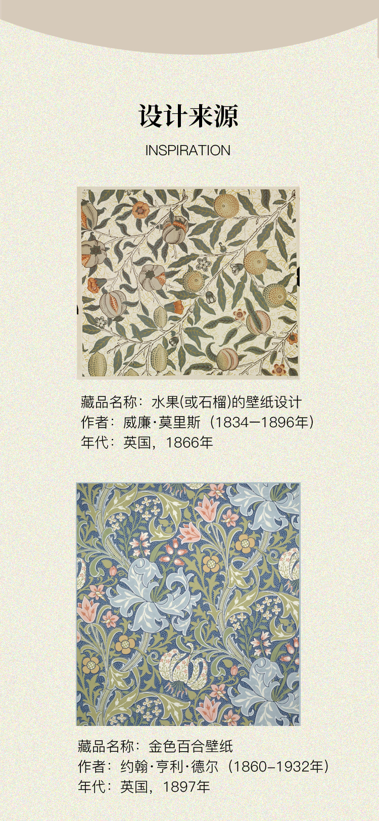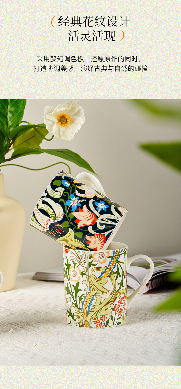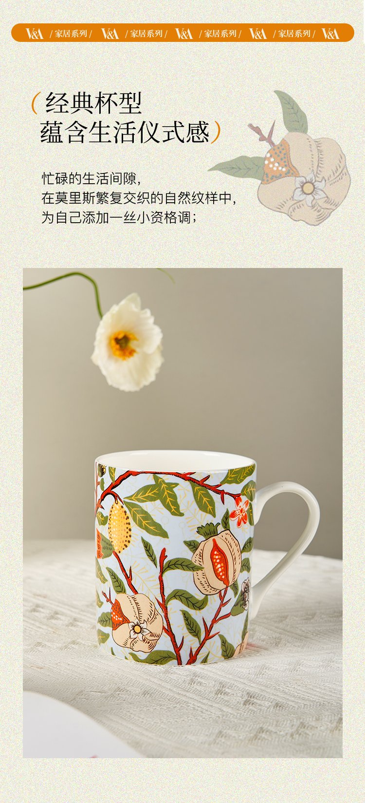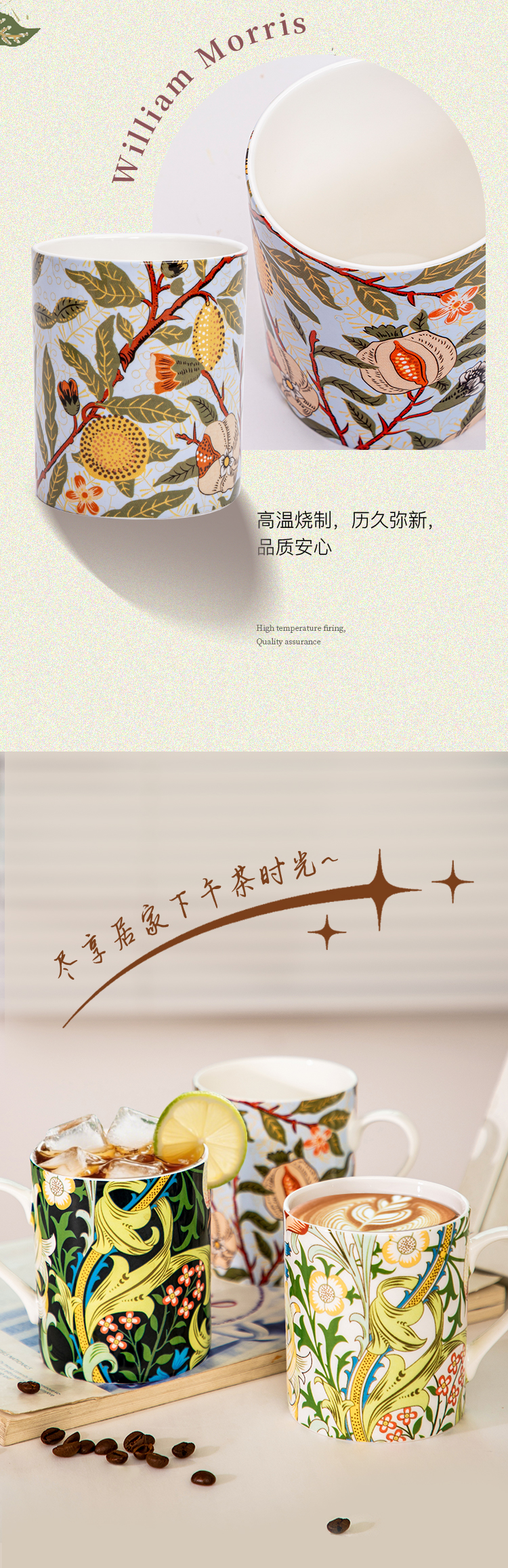 V&A博物馆威廉莫里斯系列 水果或石榴 金色百合 月光百合 骨瓷杯