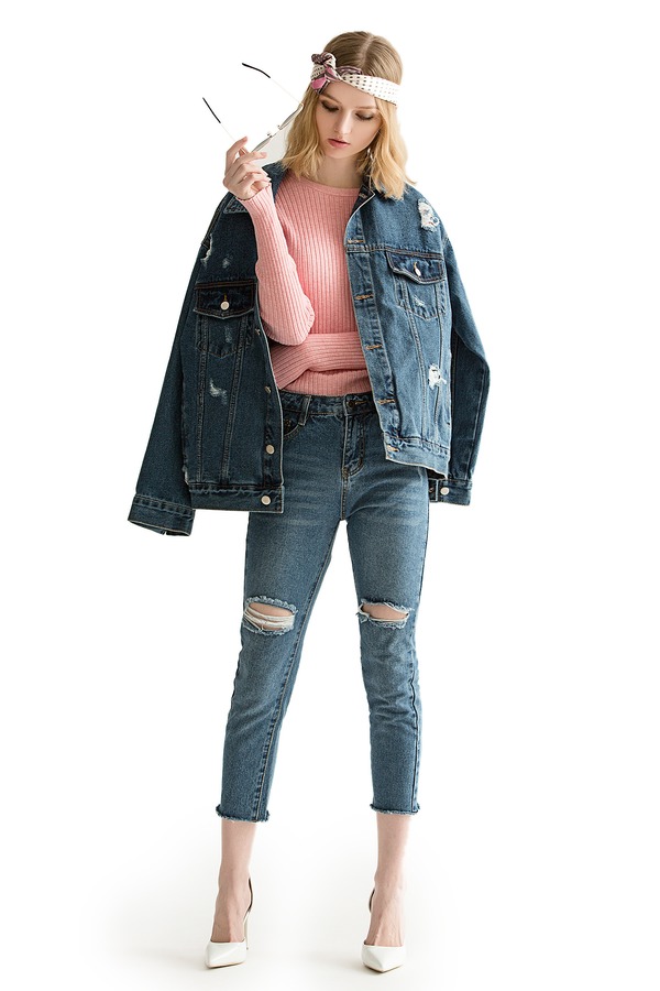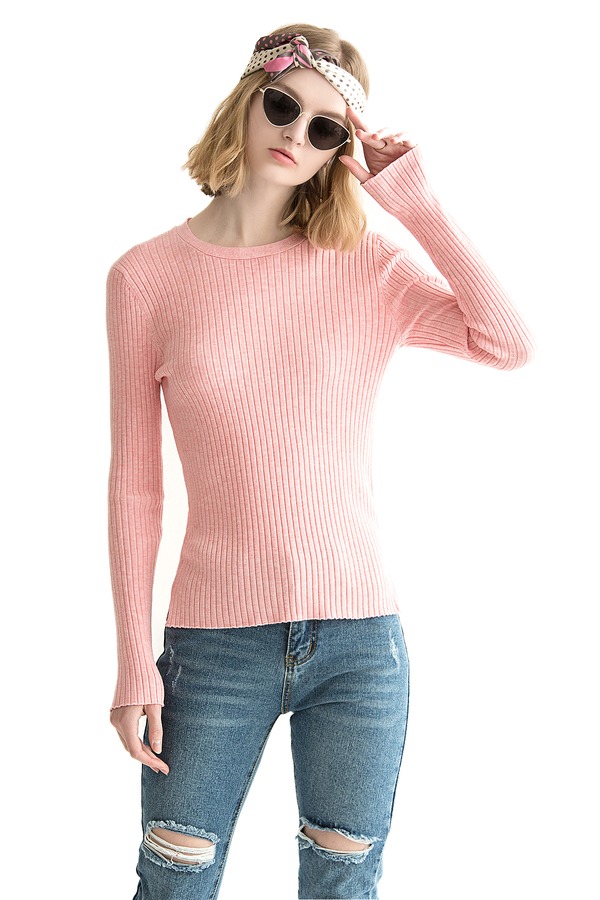 CODES COMBINE 粉色简约短版毛衫 1085
