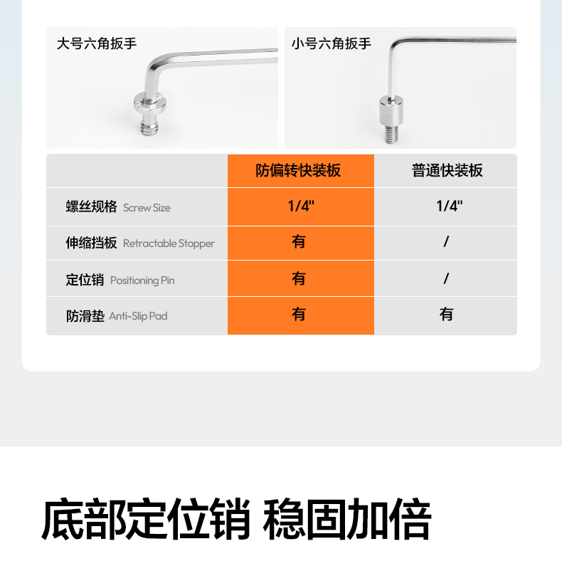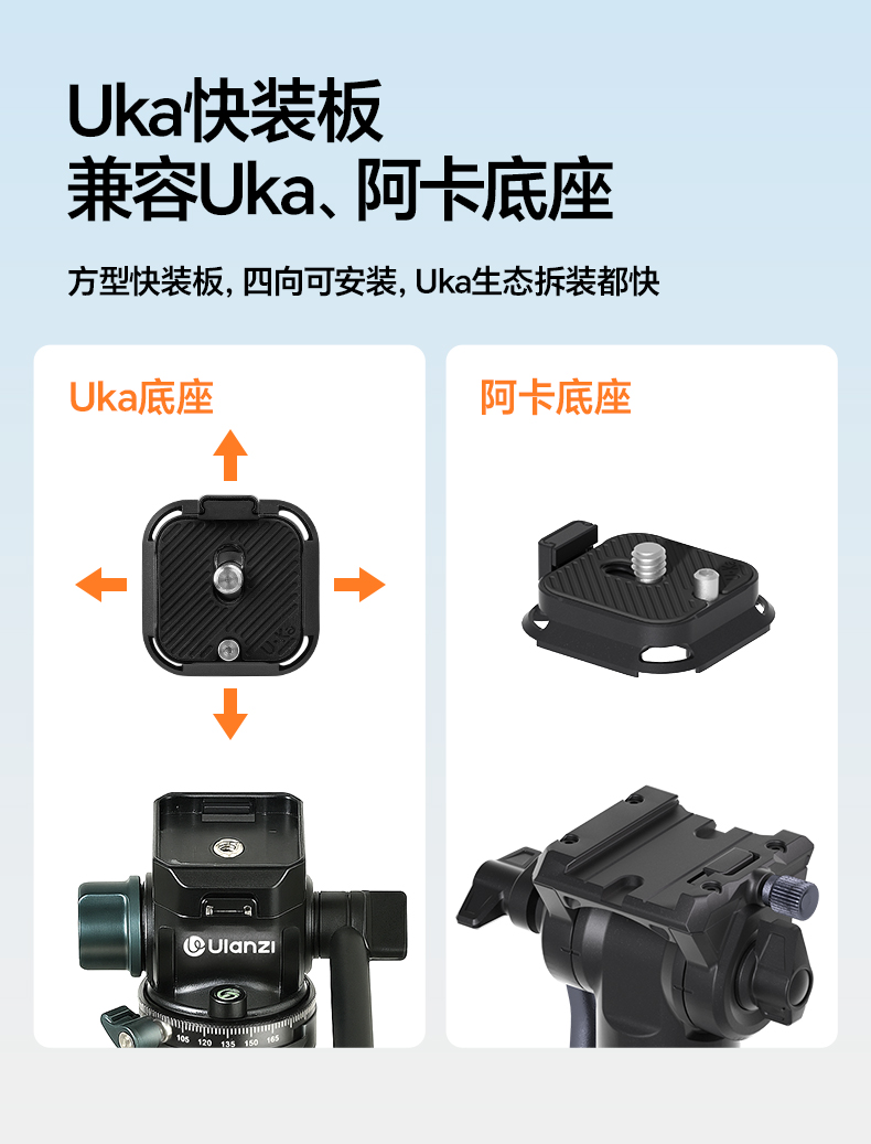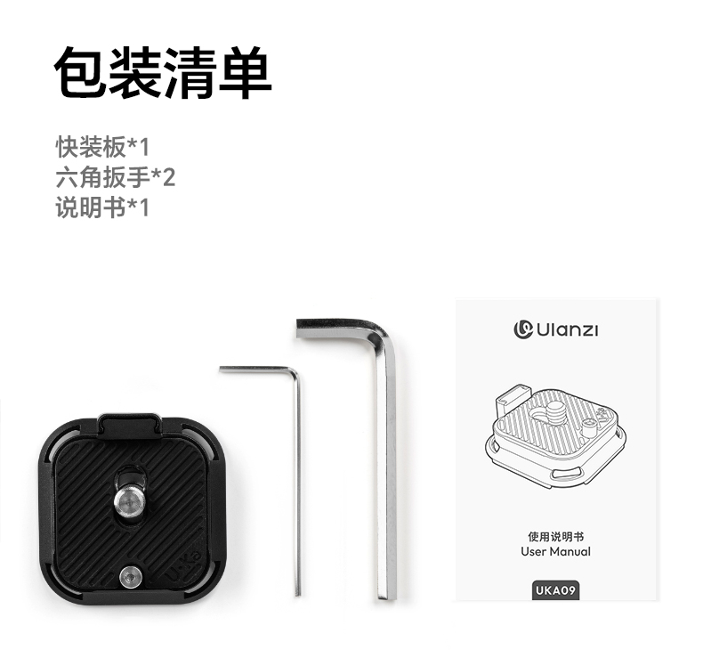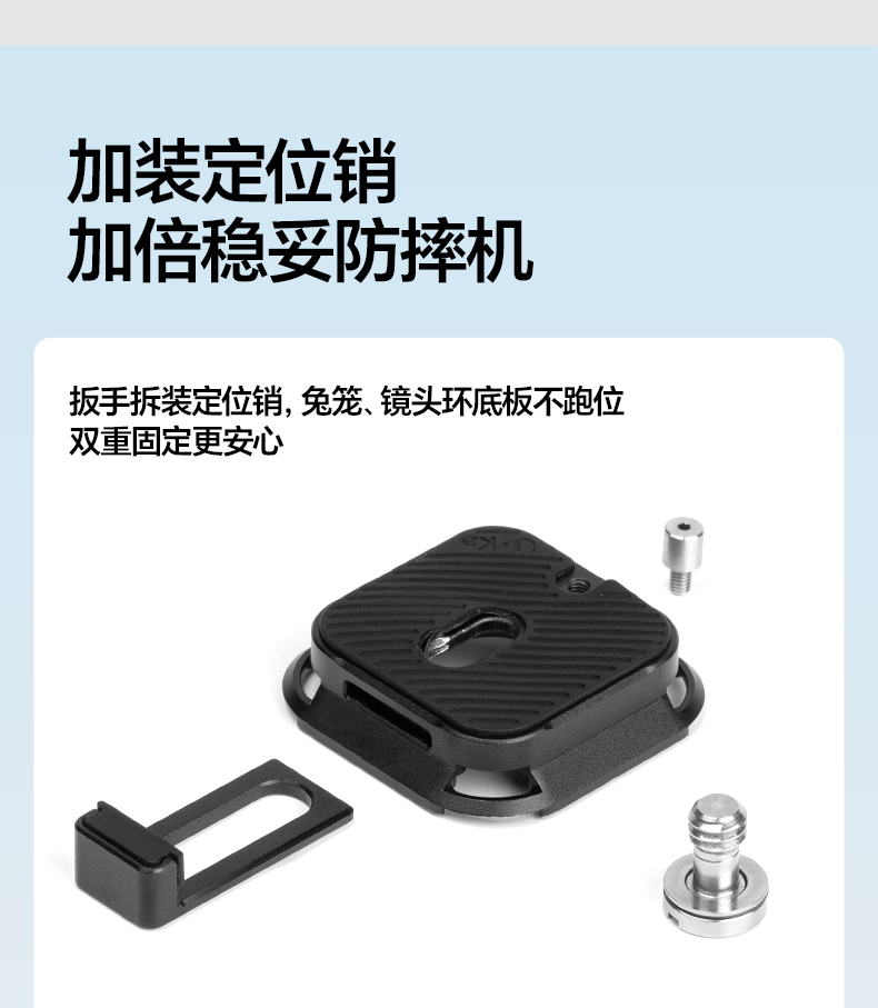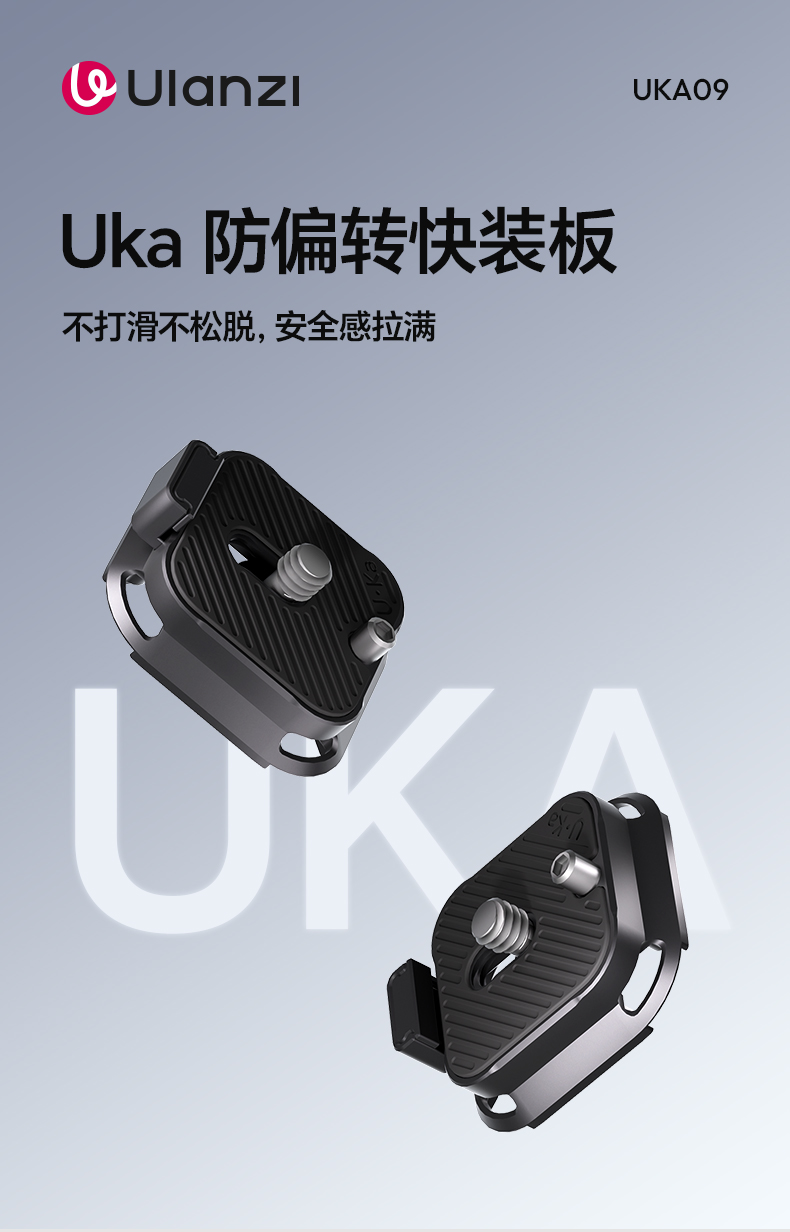Ulanzi优篮子Uka09防偏转快装板微单单反相机防摔阿卡云台通用配件底座滑轨摄影摄像三脚架拍摄防脱快拆板固定