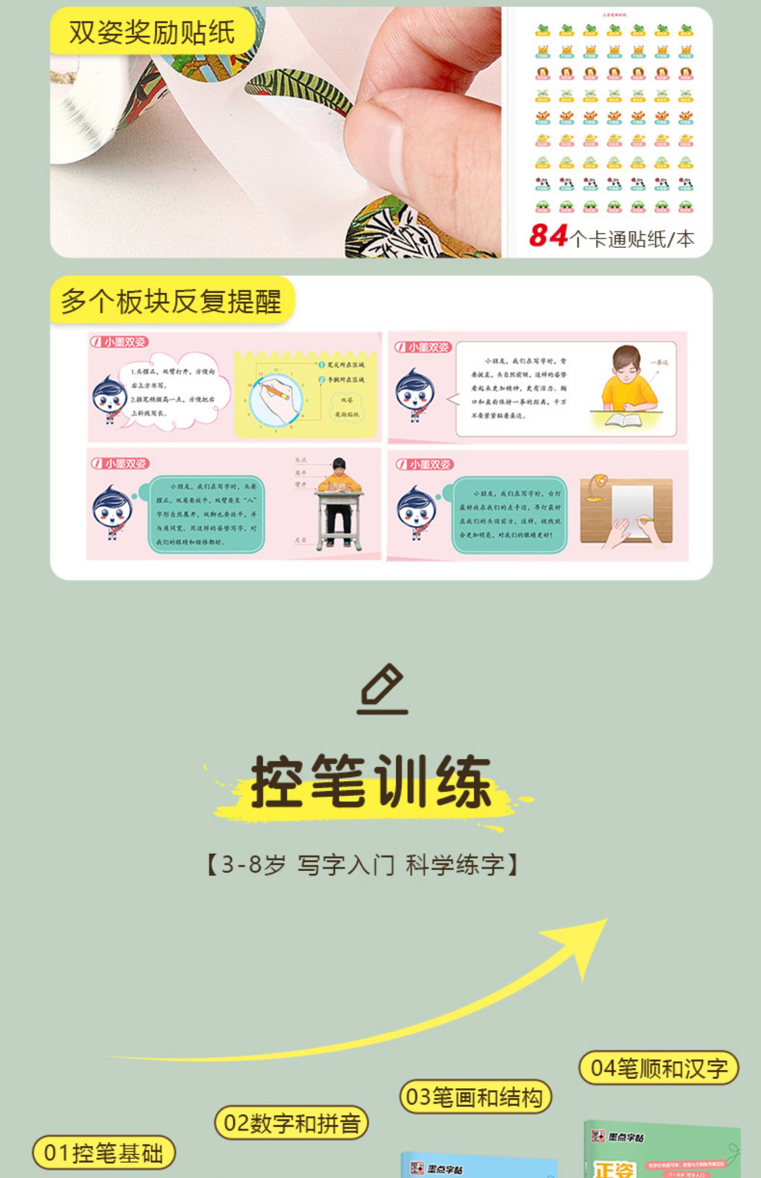 墨点字帖正姿控笔基础荆霄鹏控笔训练小学生练字帖一二三四五六年级铅笔控笔训练写字本练字入门