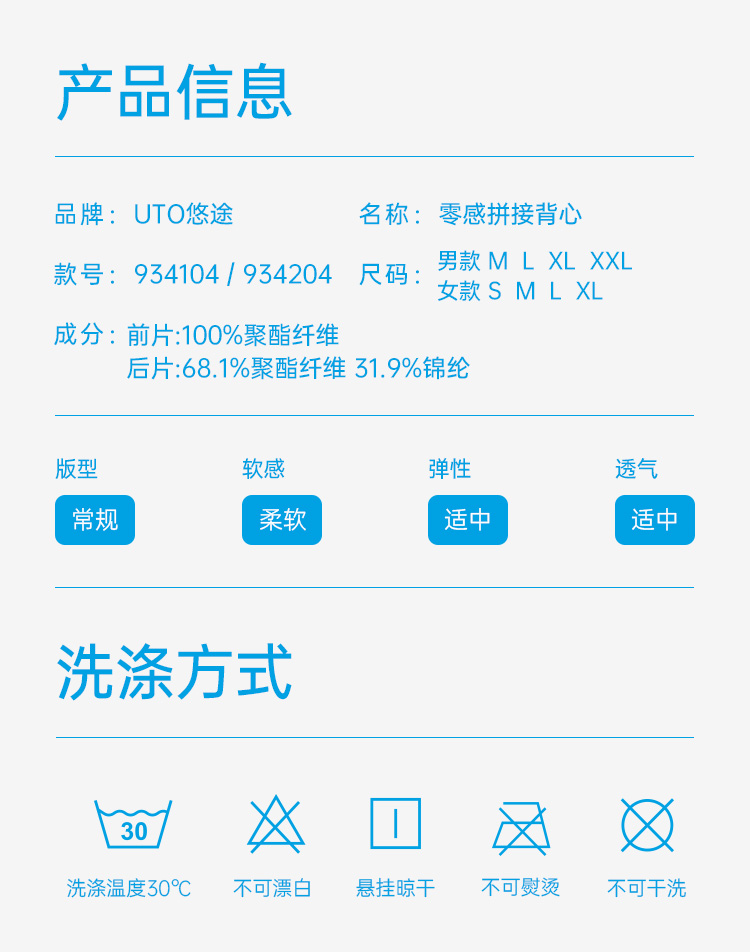 UTO/悠途炫系列零感拼接男式背心