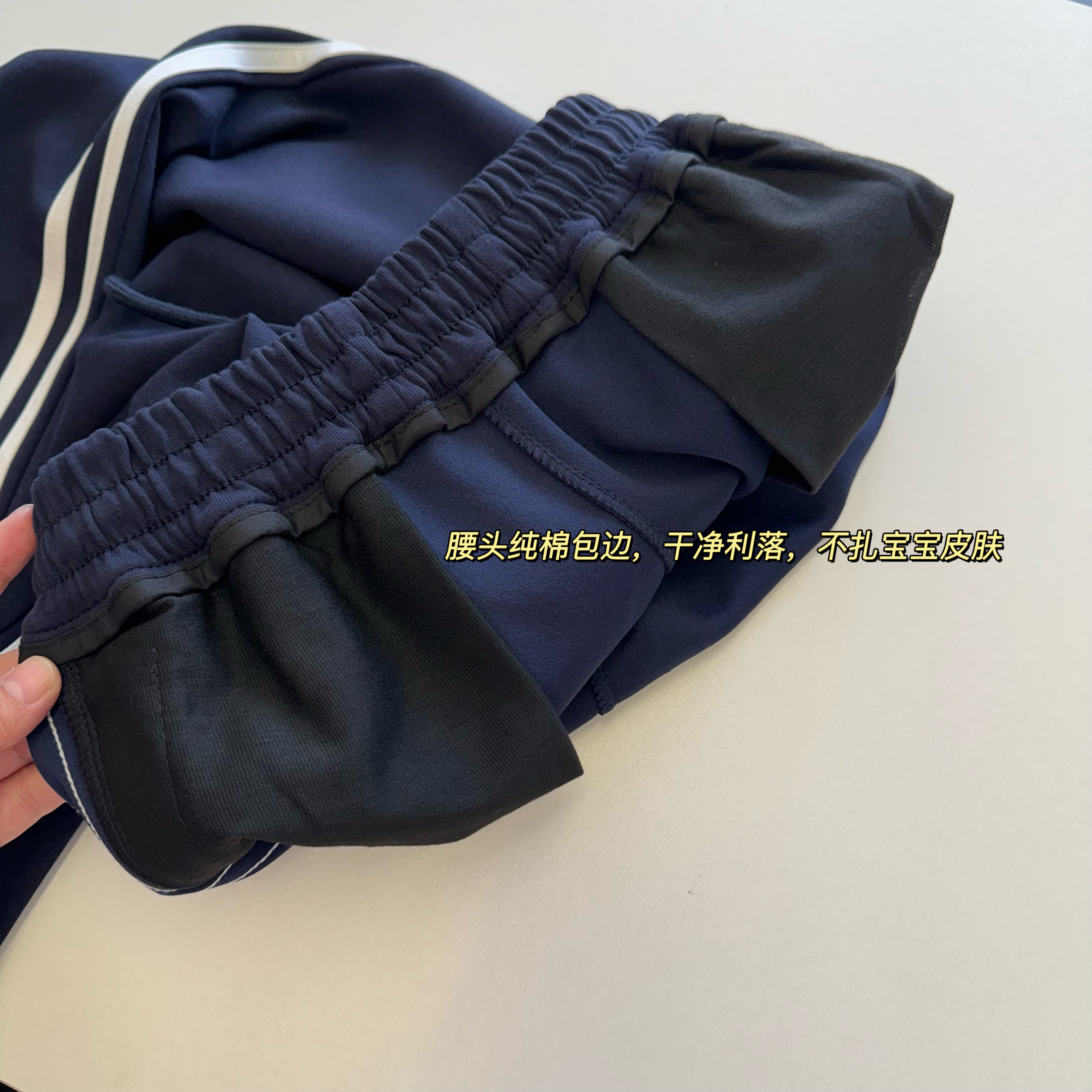 【春日童装 | 吾家通用校服裤】可穿至190码,侧边潮流条杠,腰头纯棉包边不扎皮肤,直筒版型不挑身材,肤感舒适贴合身形,做工精细更耐穿,腰头抽绳设计方便穿脱,立体裁剪简约百搭