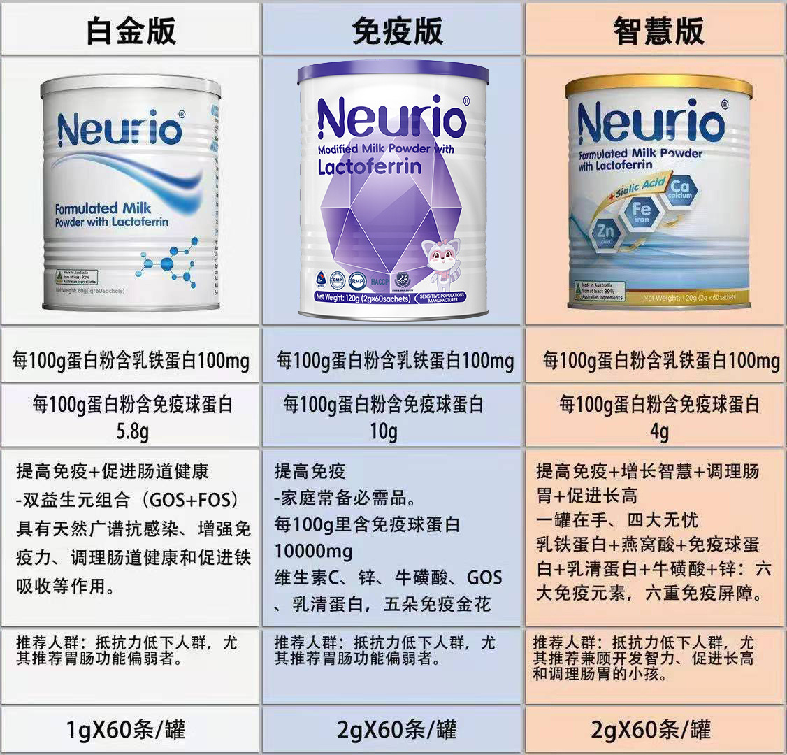 所以白金是neurio的金字招牌,比蓝钻版多了益生元,促进益生菌的活性,对肠道比较好,平时消化不太好的、爱拉肚子的,都适合喝这款适应于所有人群~也是销量最好的一款!