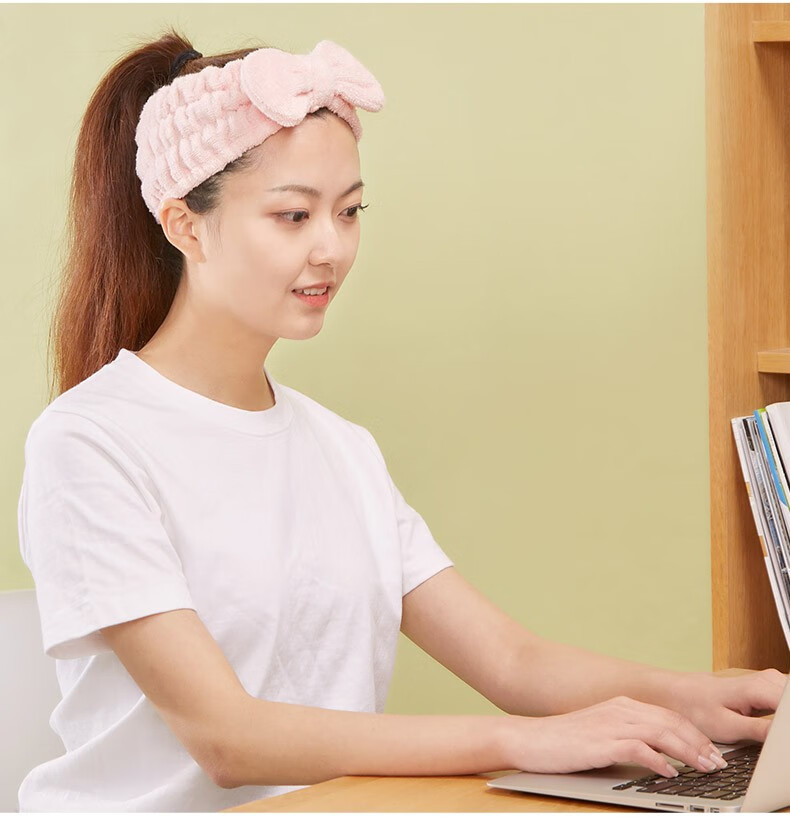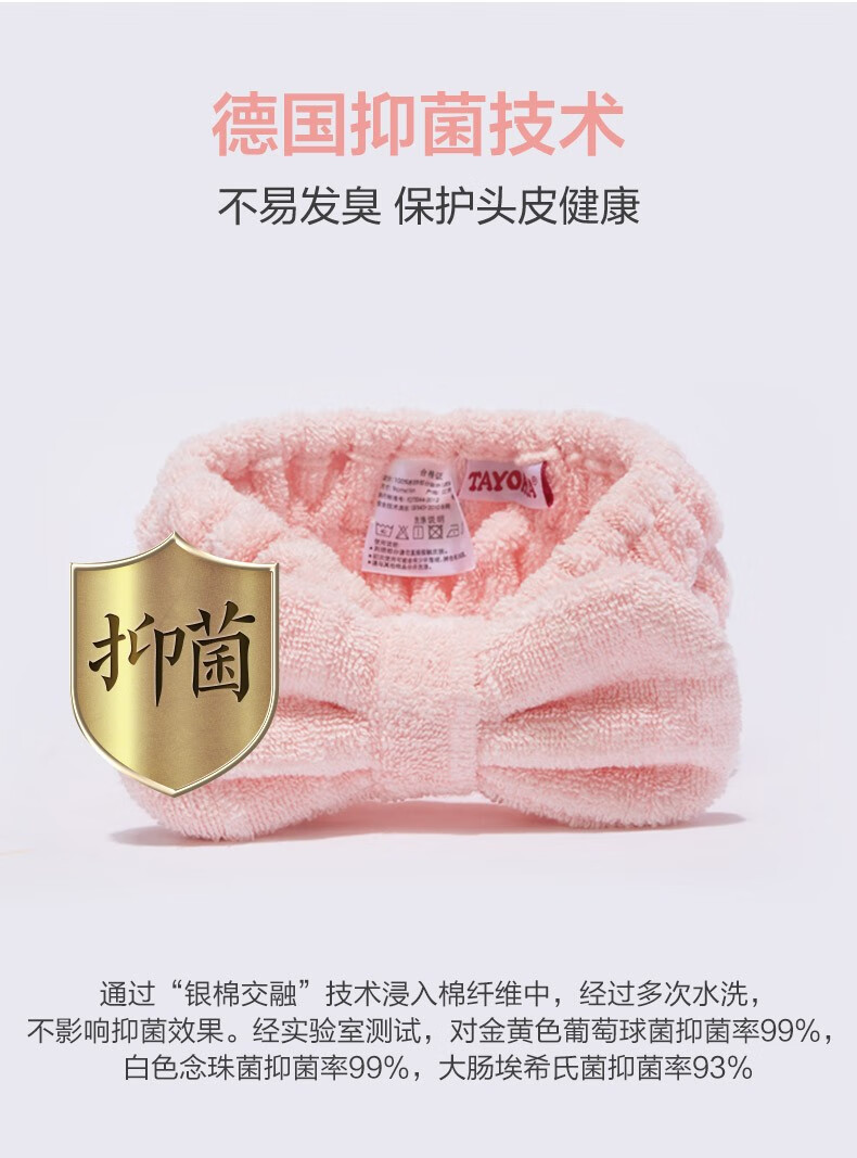【多样屋专柜】多样屋发箍洗脸发带抑菌棉蝴蝶结洗脸束发带莫兰迪发带 桃粉