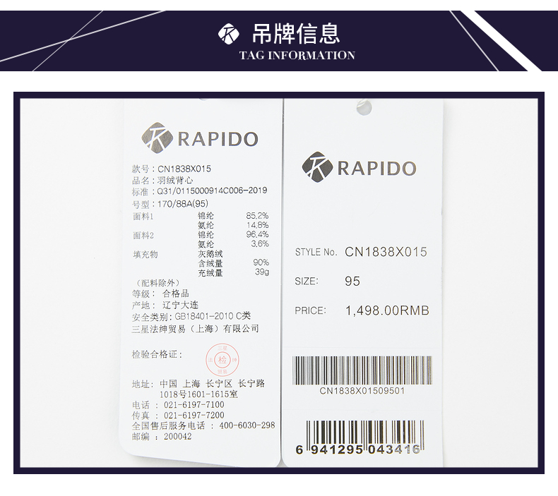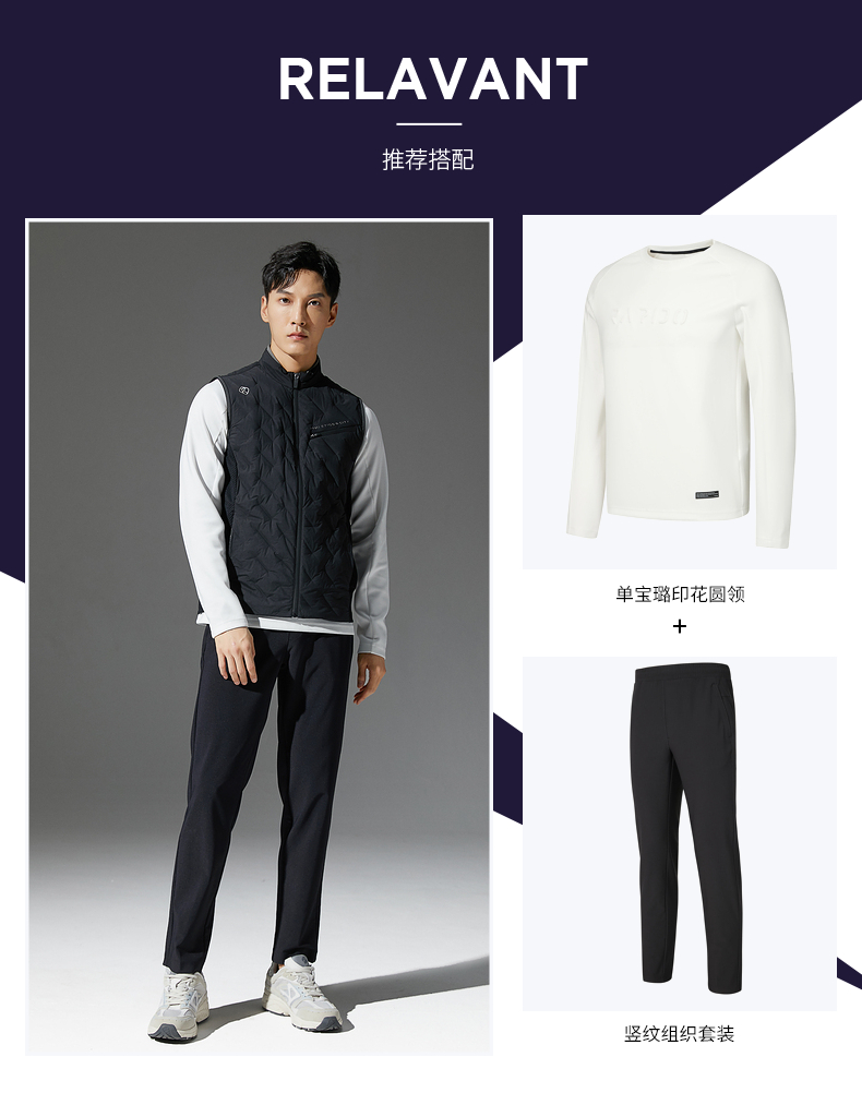 RAPIDO雳霹道2021秋季男士时尚轻薄鹅绒立领马甲运动背心CN1838X015