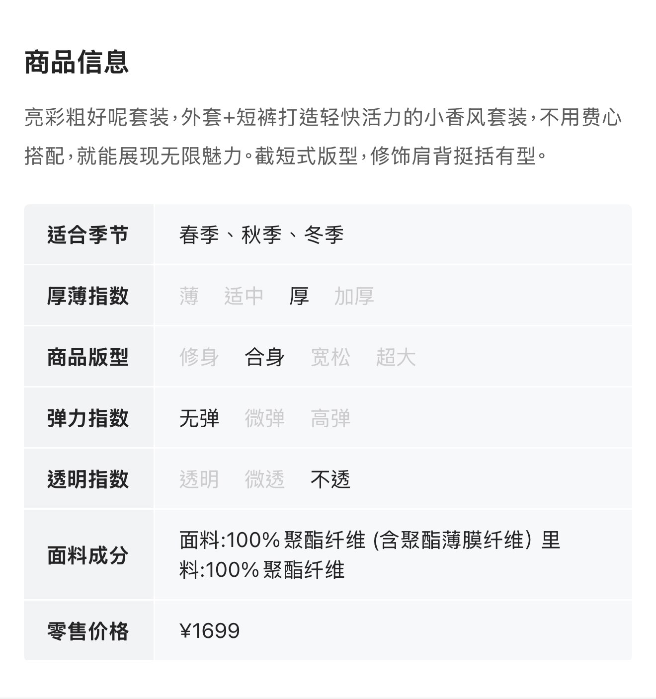 香影 小香风法式外套短款套装 16680