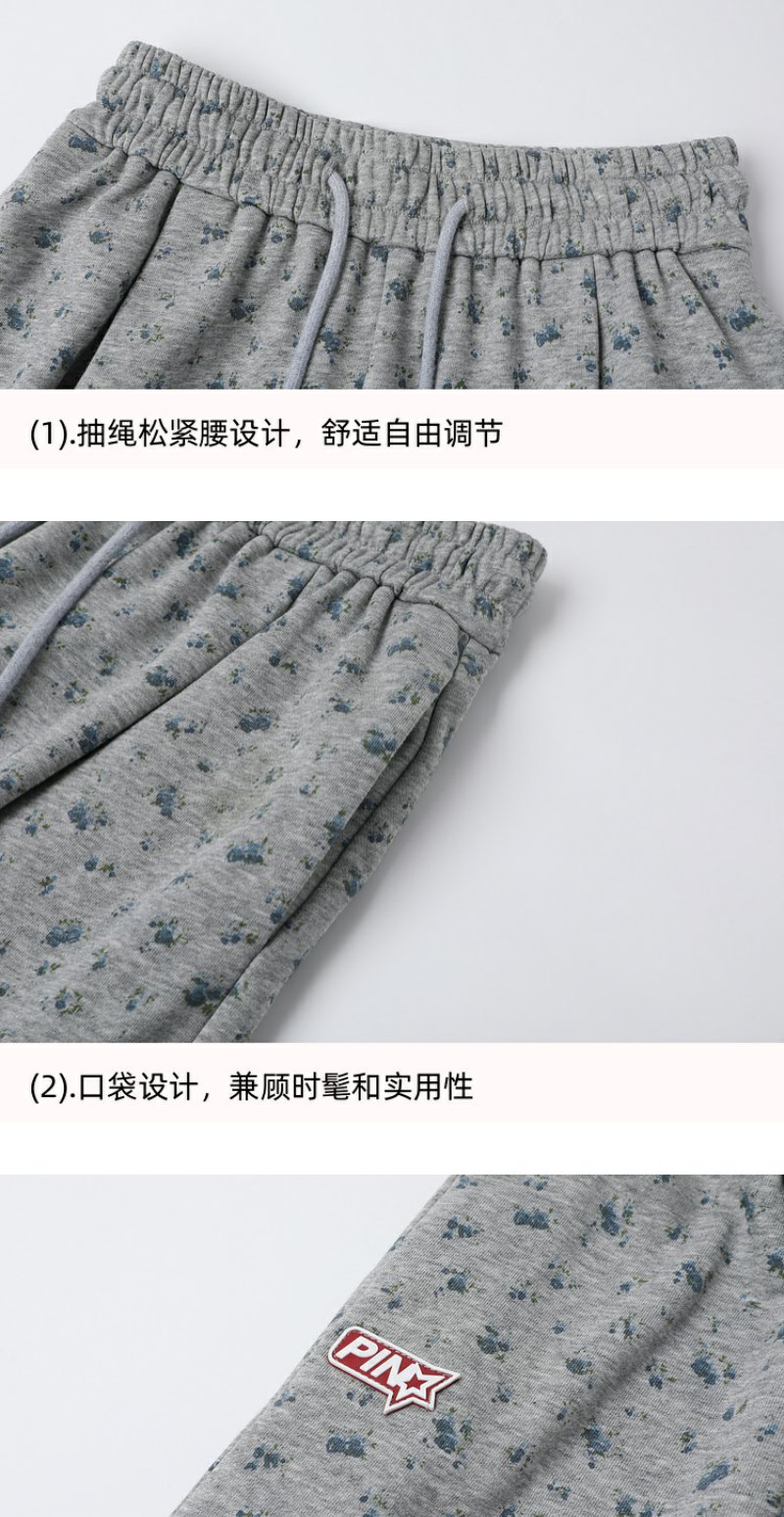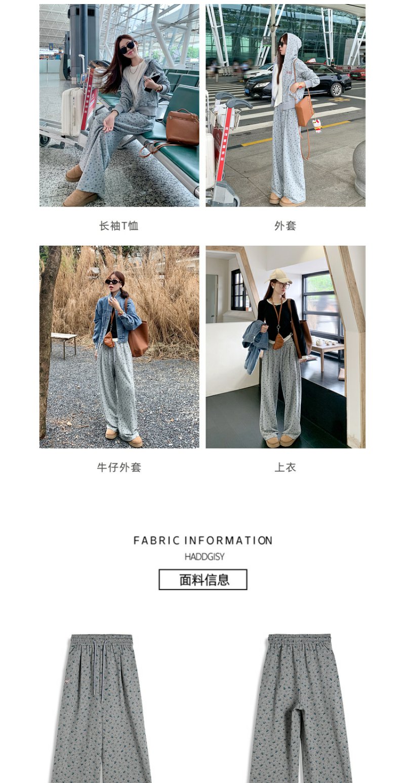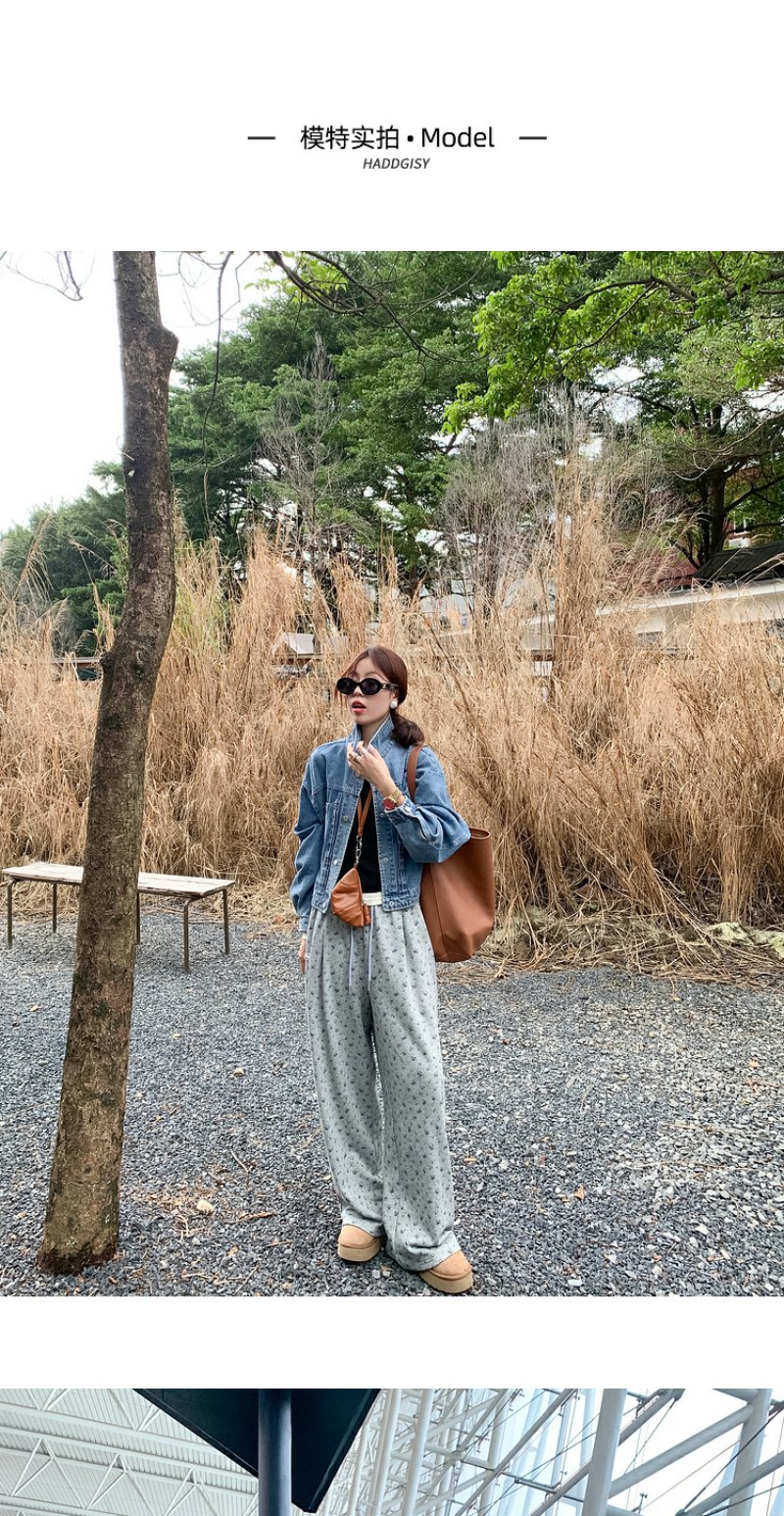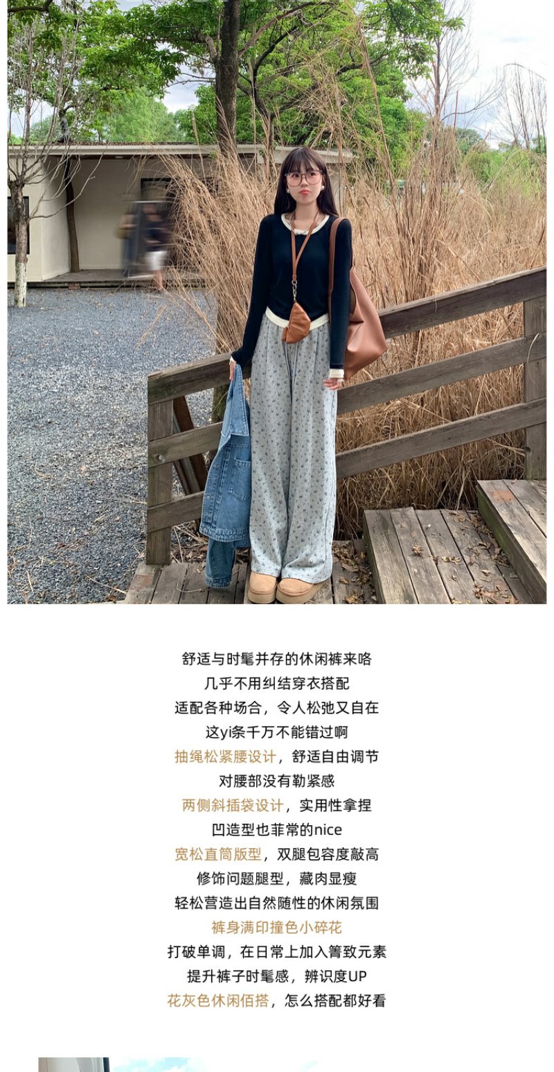 <曾小咸推荐> 灰色慵懒风高腰碎花休闲裤