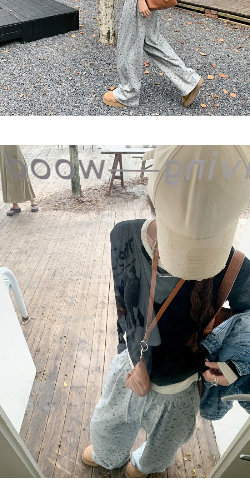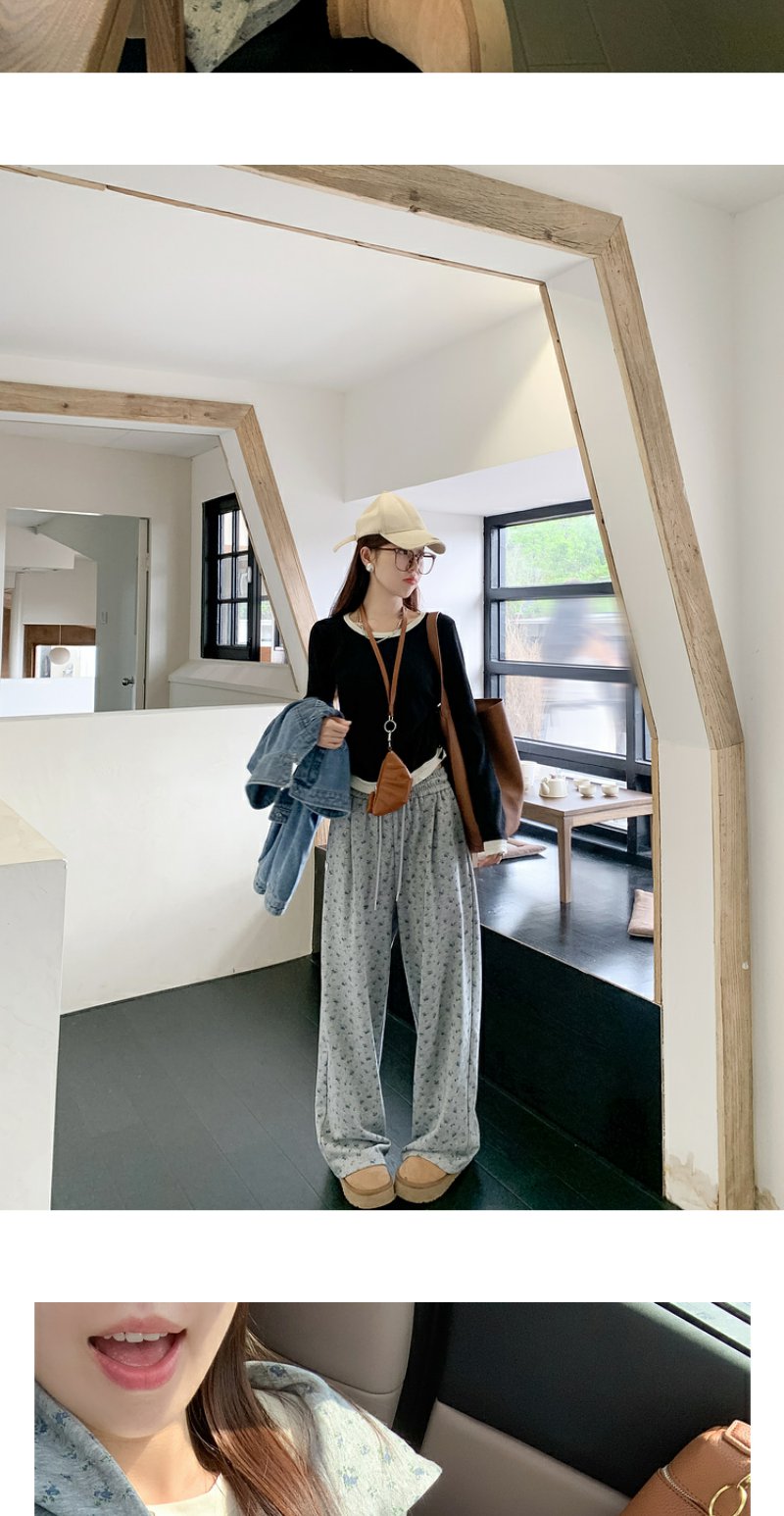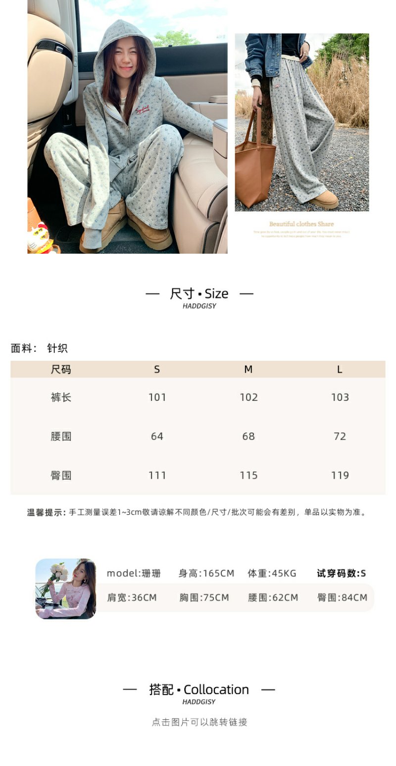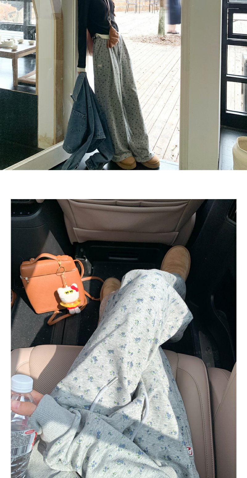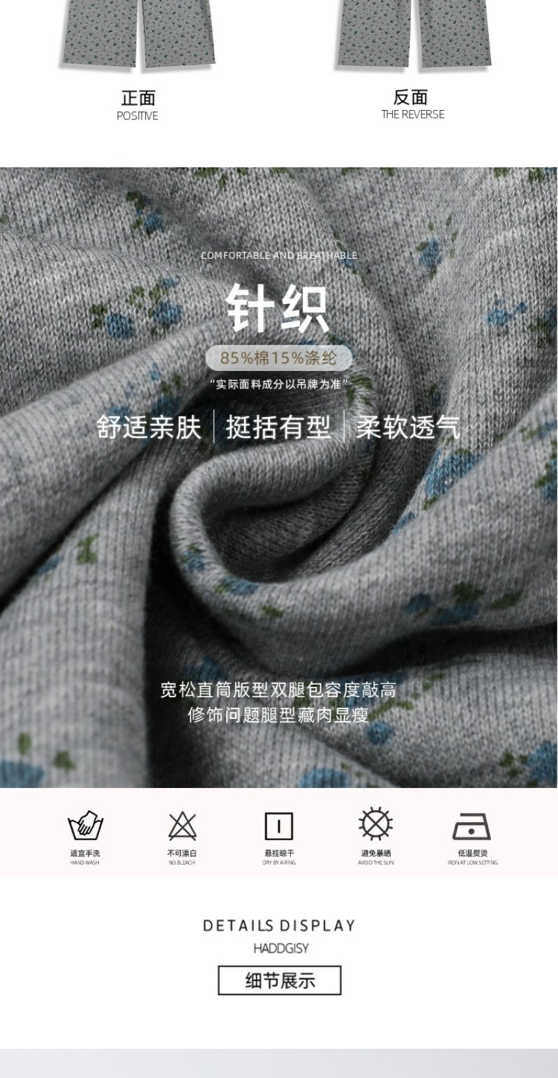 <曾小咸推荐> 灰色慵懒风高腰碎花休闲裤