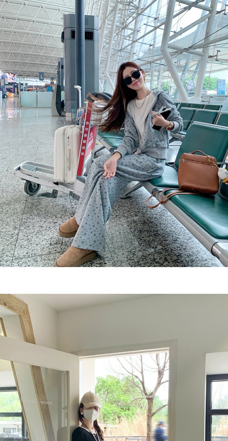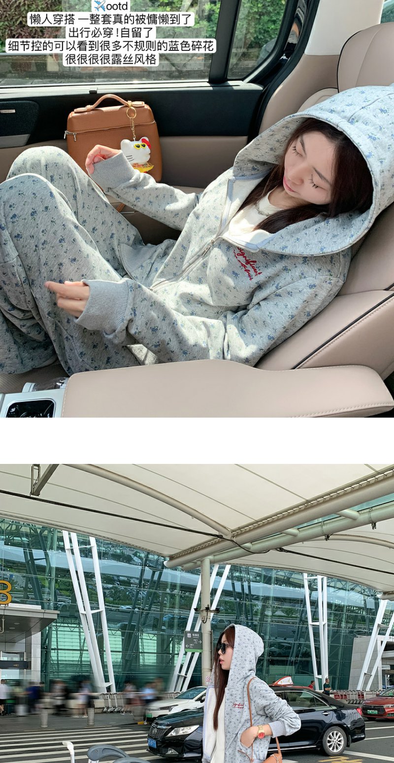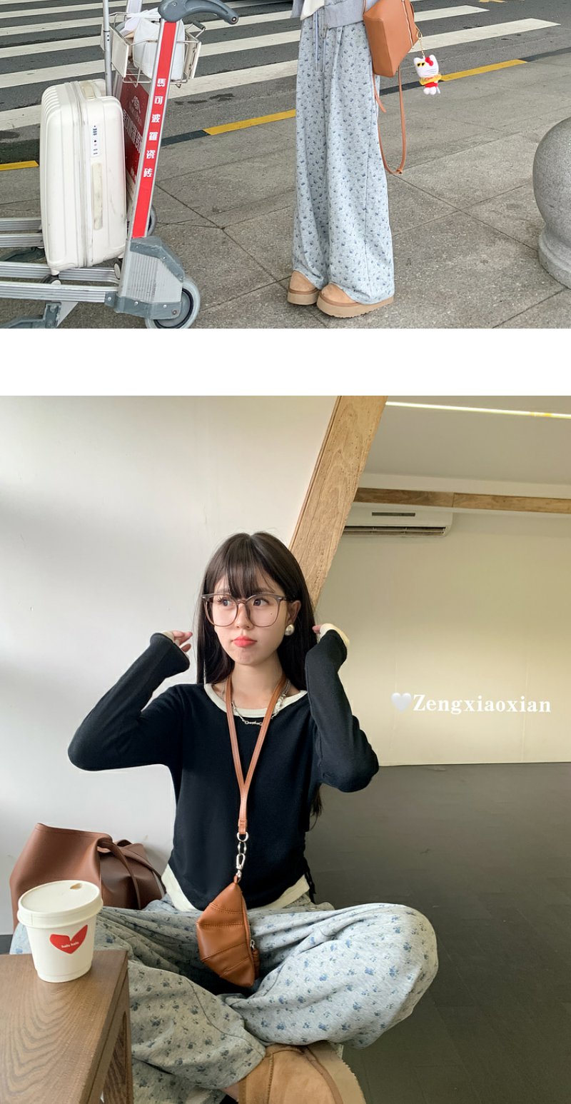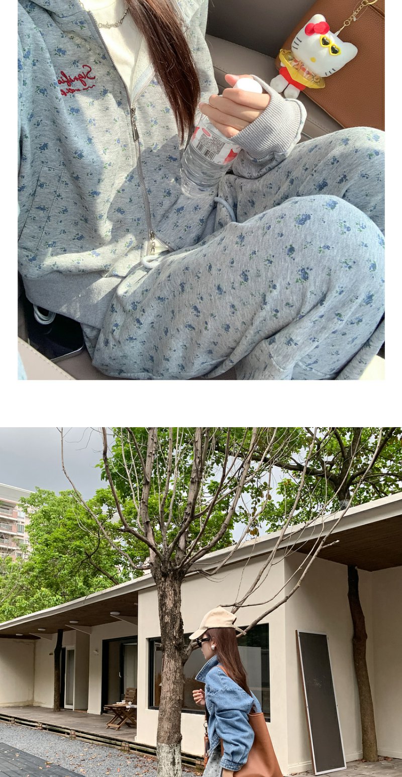 <曾小咸推荐> 灰色慵懒风高腰碎花休闲裤