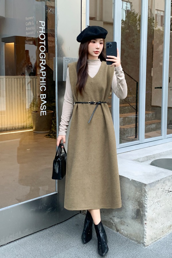 Le Malene 复古气质背心连衣裙+打底衫套装 21596