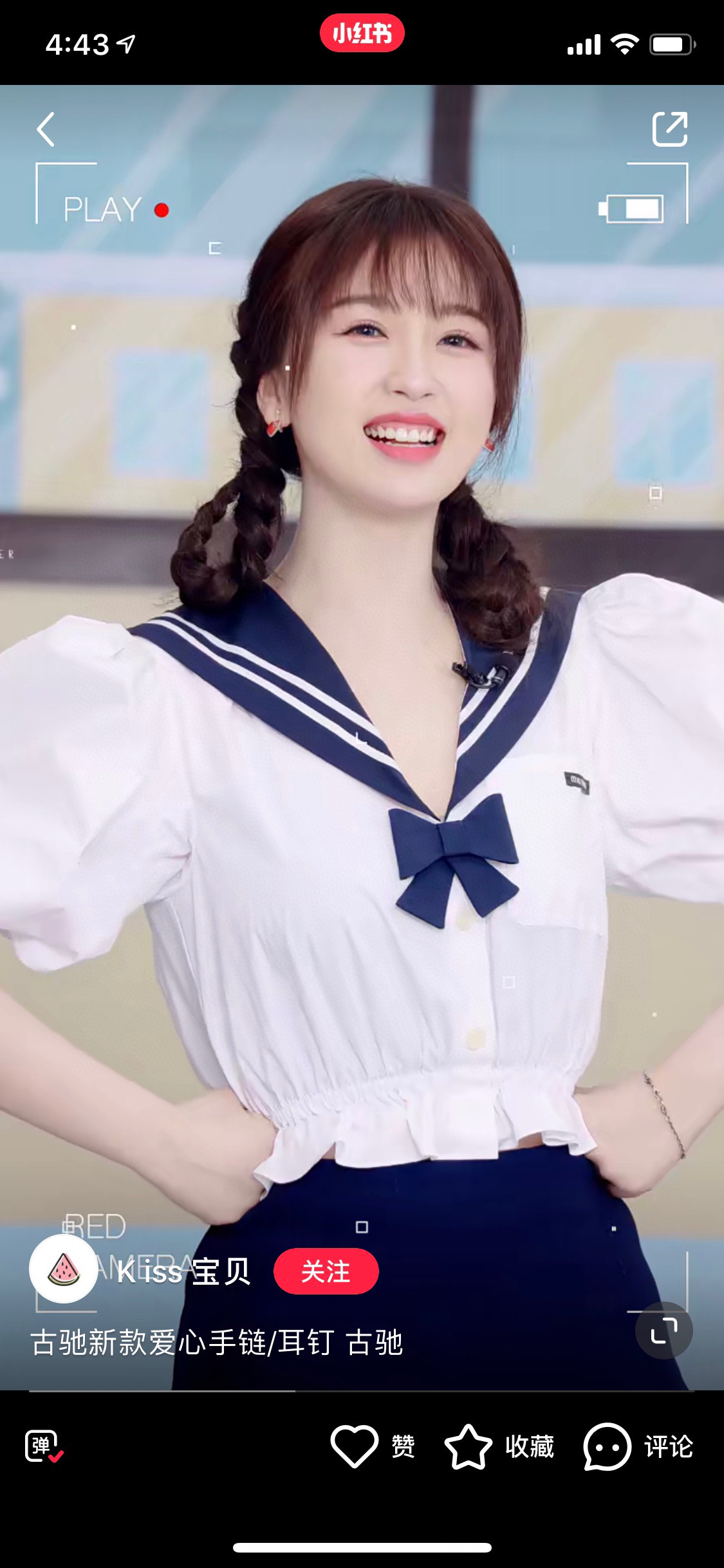 虞书欣同款 纯银材质以爱心形状为背景 融合镂空效果的互扣式双G图案和红色珐琅 细节很精致