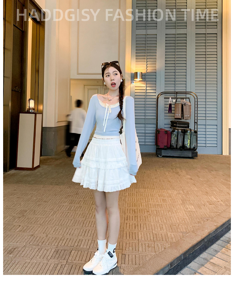 <曾小咸推荐>现货秒杀!微信超特价!【气质输出】蓝色蕾丝绑带长袖 日常119.99 立减60 秒杀59.99!短袖秒杀49.99!!