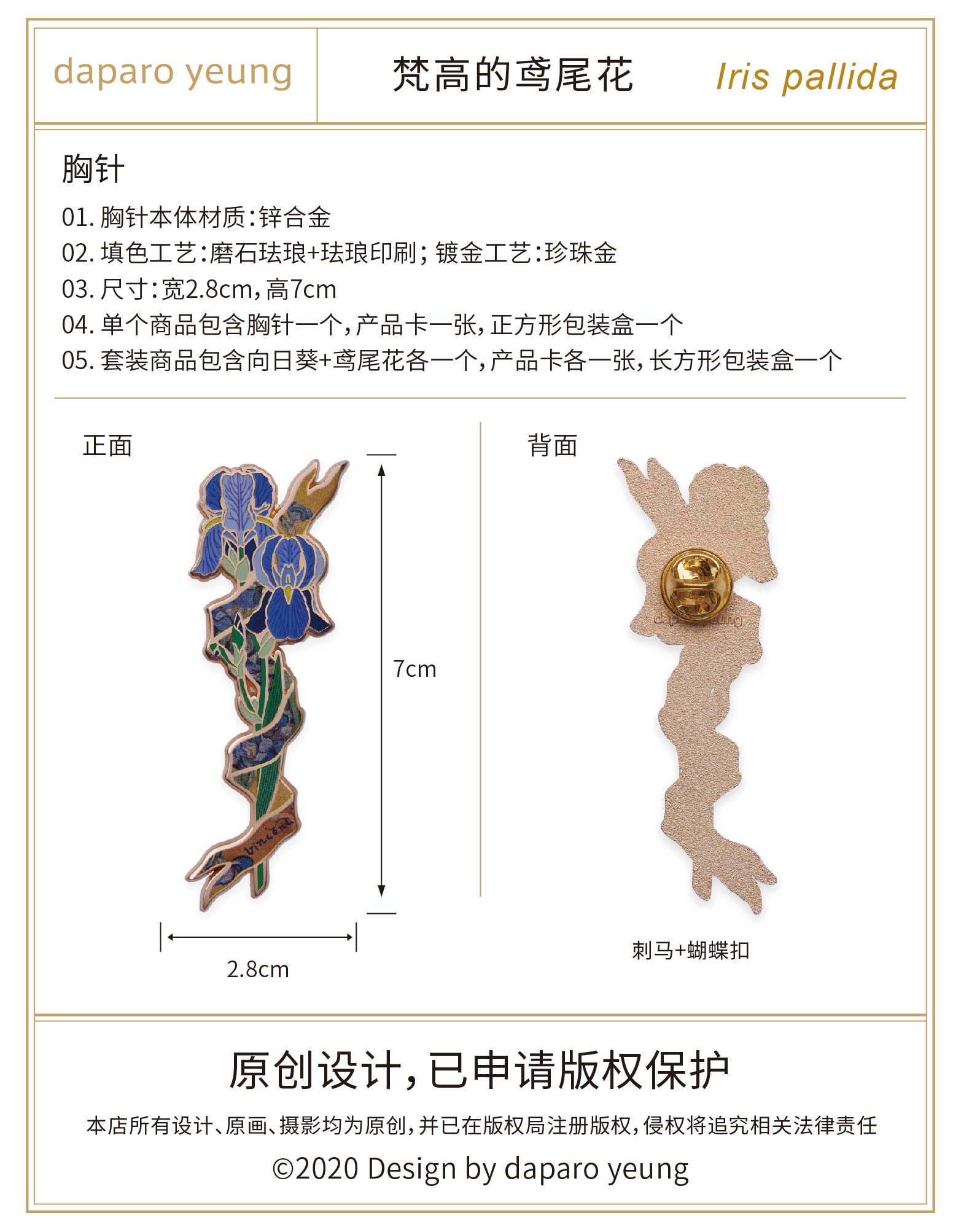 梵高的鸢尾花女男金属胸针设计师原创情侣礼物徽章别针首饰创意