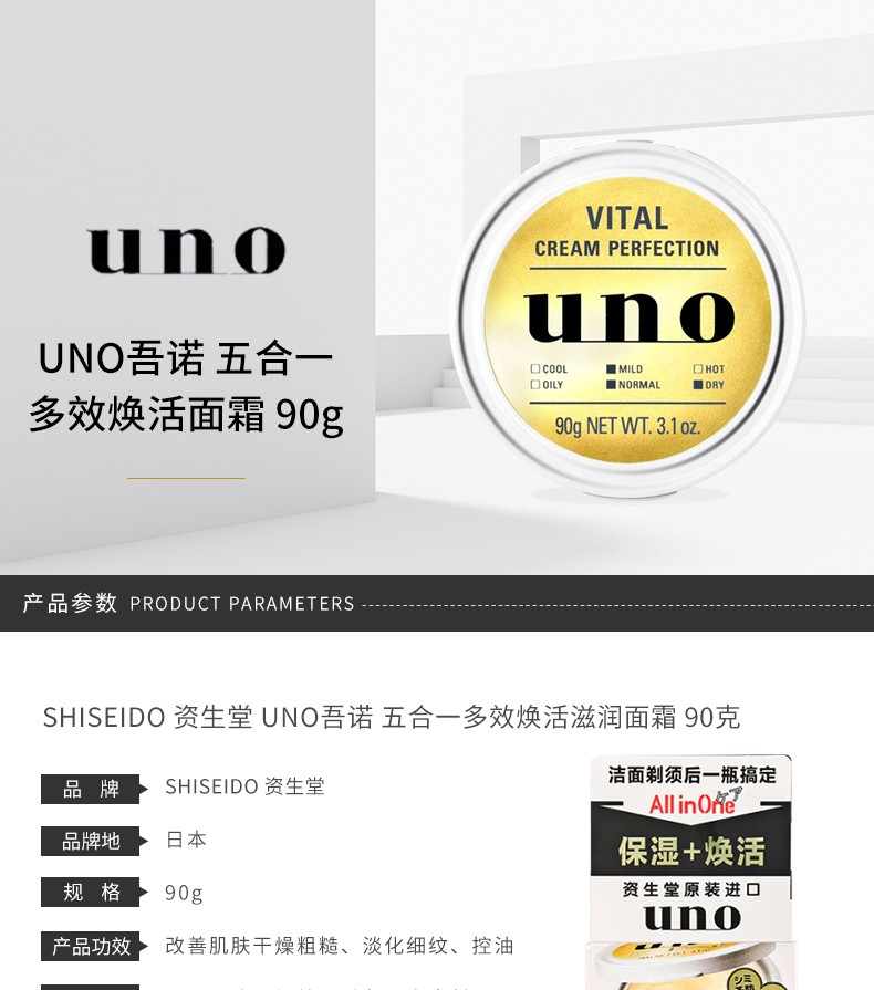 资生堂五合一面霜,一瓶搞定护肤,让男人也可以愿意勤快护肤的面霜!清爽无油质地,质感润泽不粘稠,