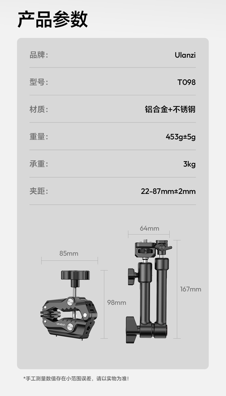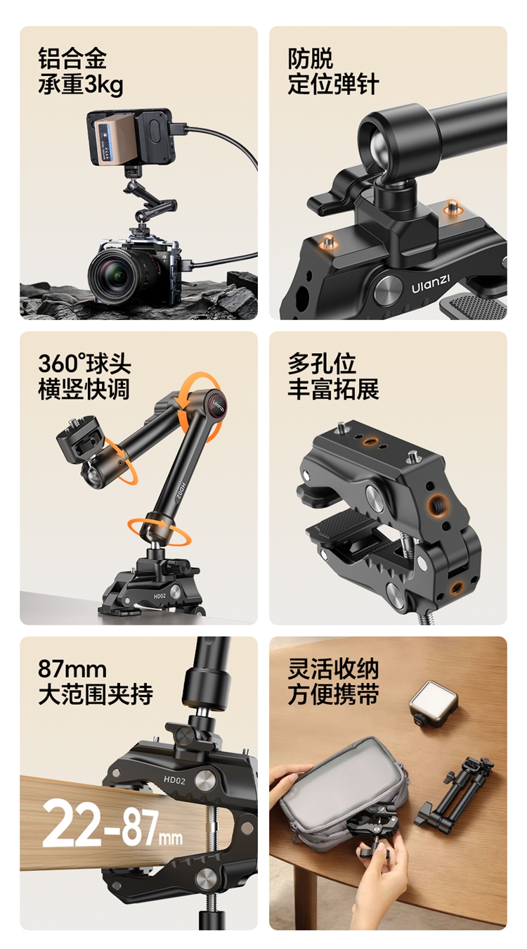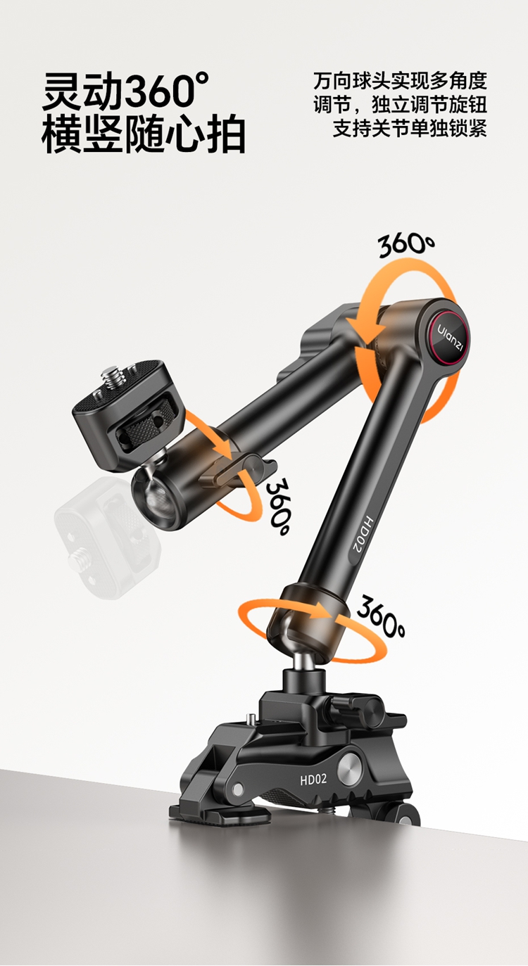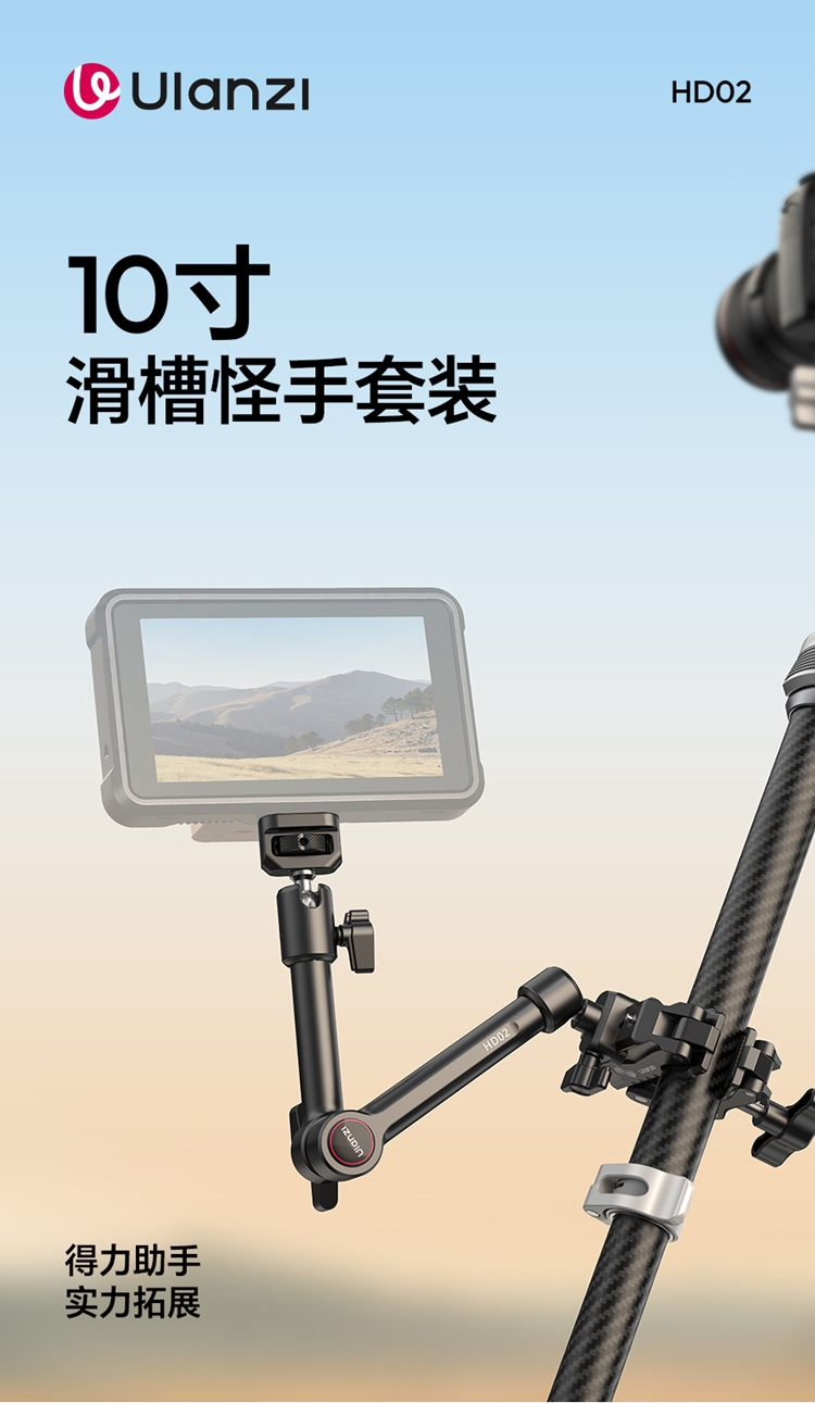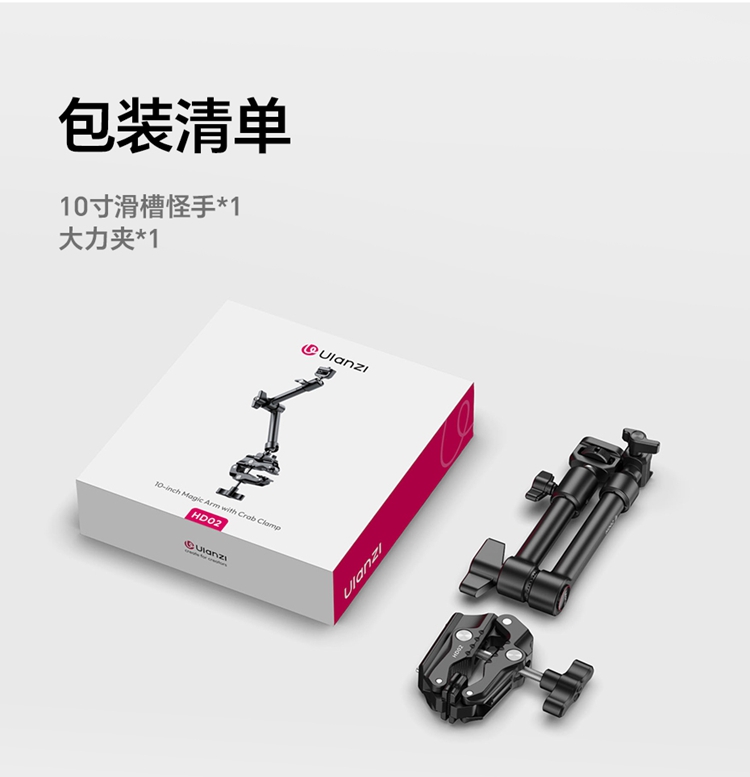 Ulanzi优篮子HD02怪手大力夹10寸滑槽套装双头万向豌豆荚运动相机金属魔术臂多功能手机相机360°支架配件