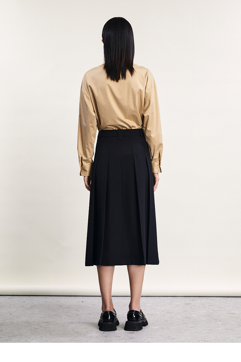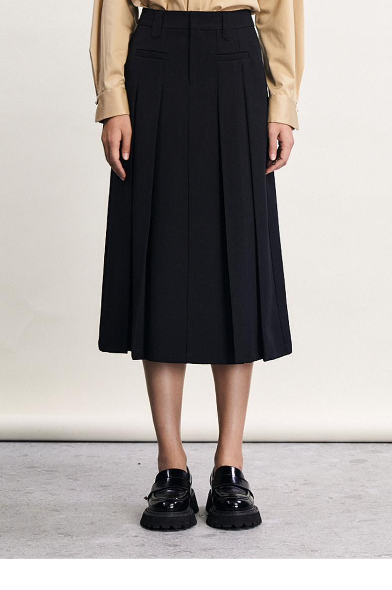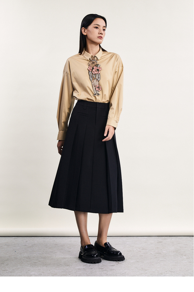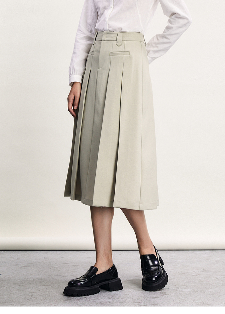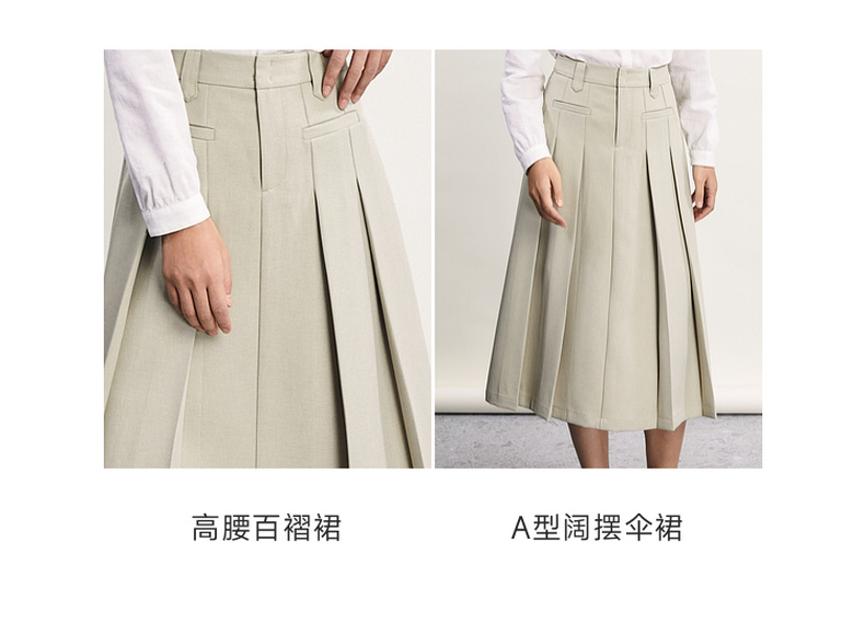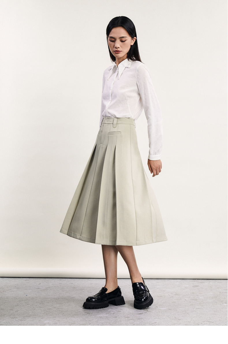 谜底百褶半身裙2024春季新款复古学院风高腰百搭A型长裙241MB0084