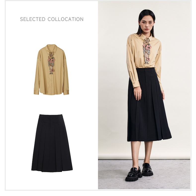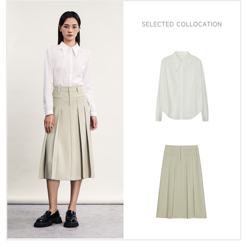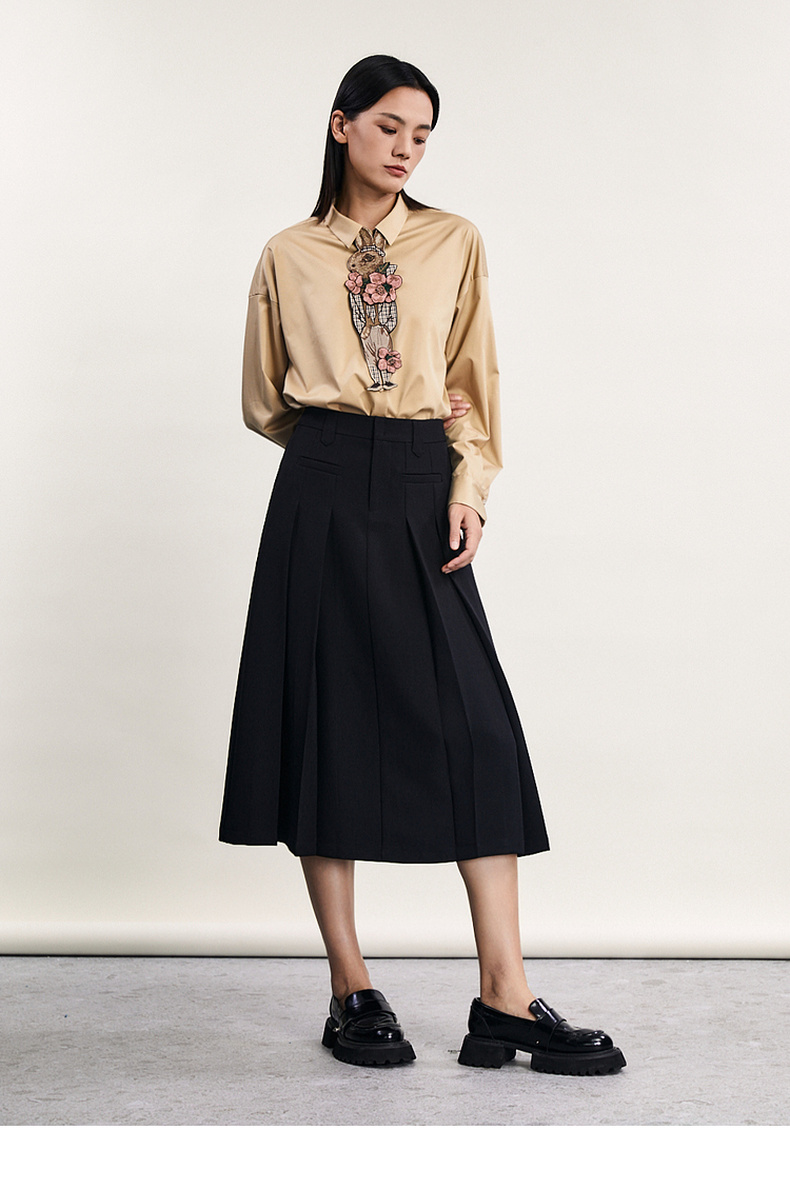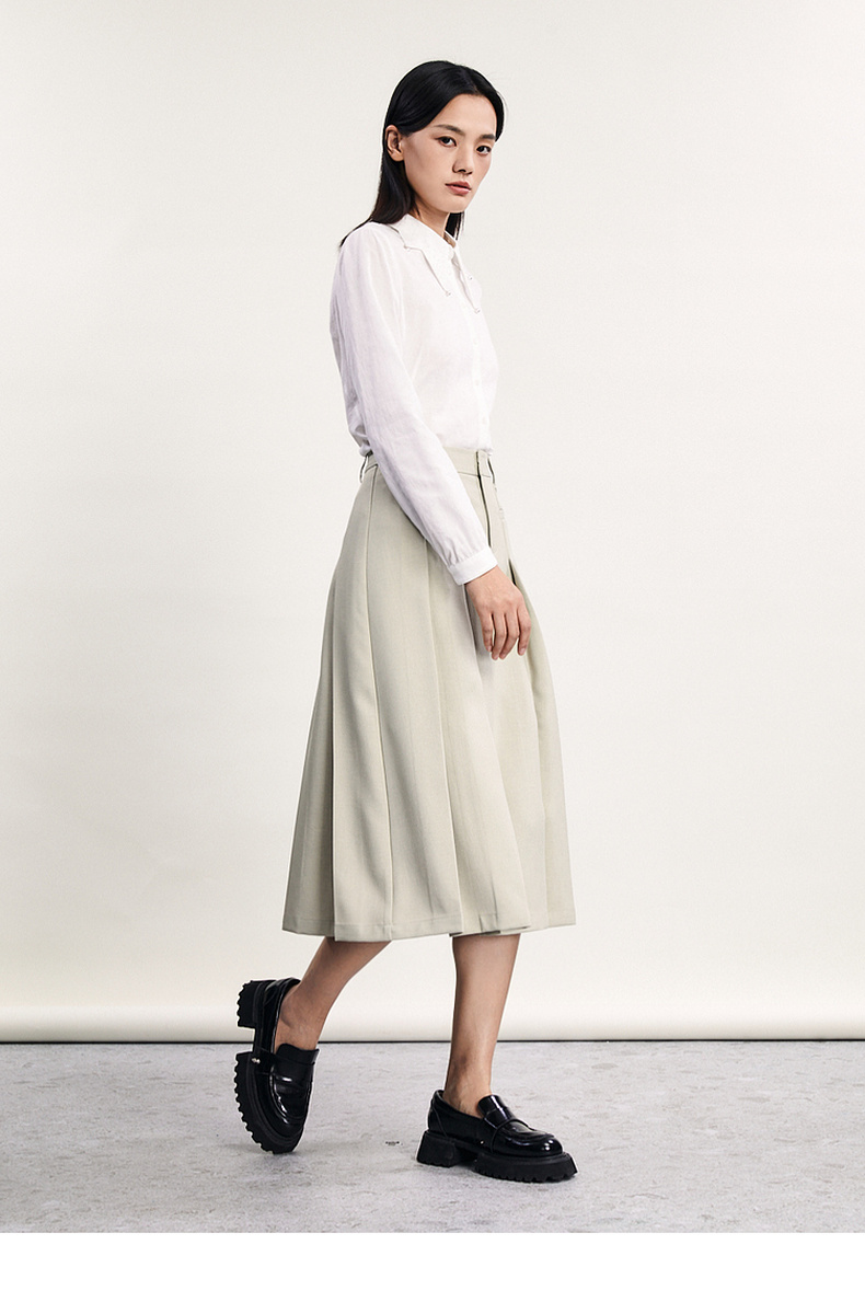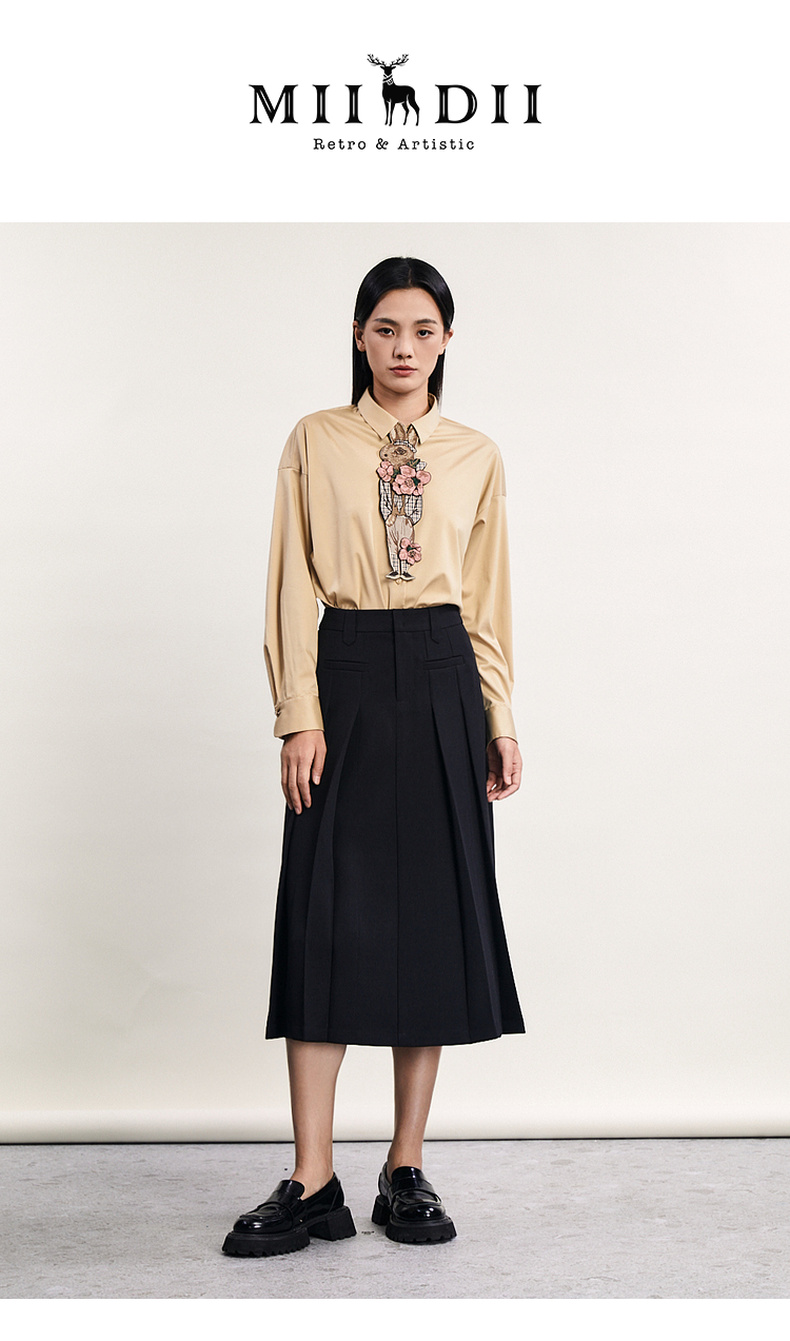 谜底百褶半身裙2024春季新款复古学院风高腰百搭A型长裙241MB0084