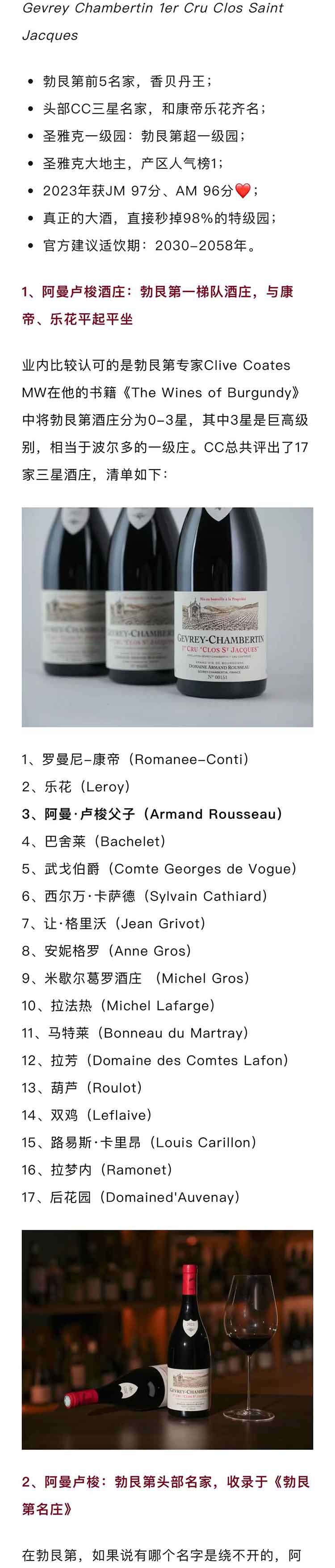 法国勃艮第2023年阿曼卢梭酒庄热夫雷香贝丹圣雅克一级园黑皮诺干红