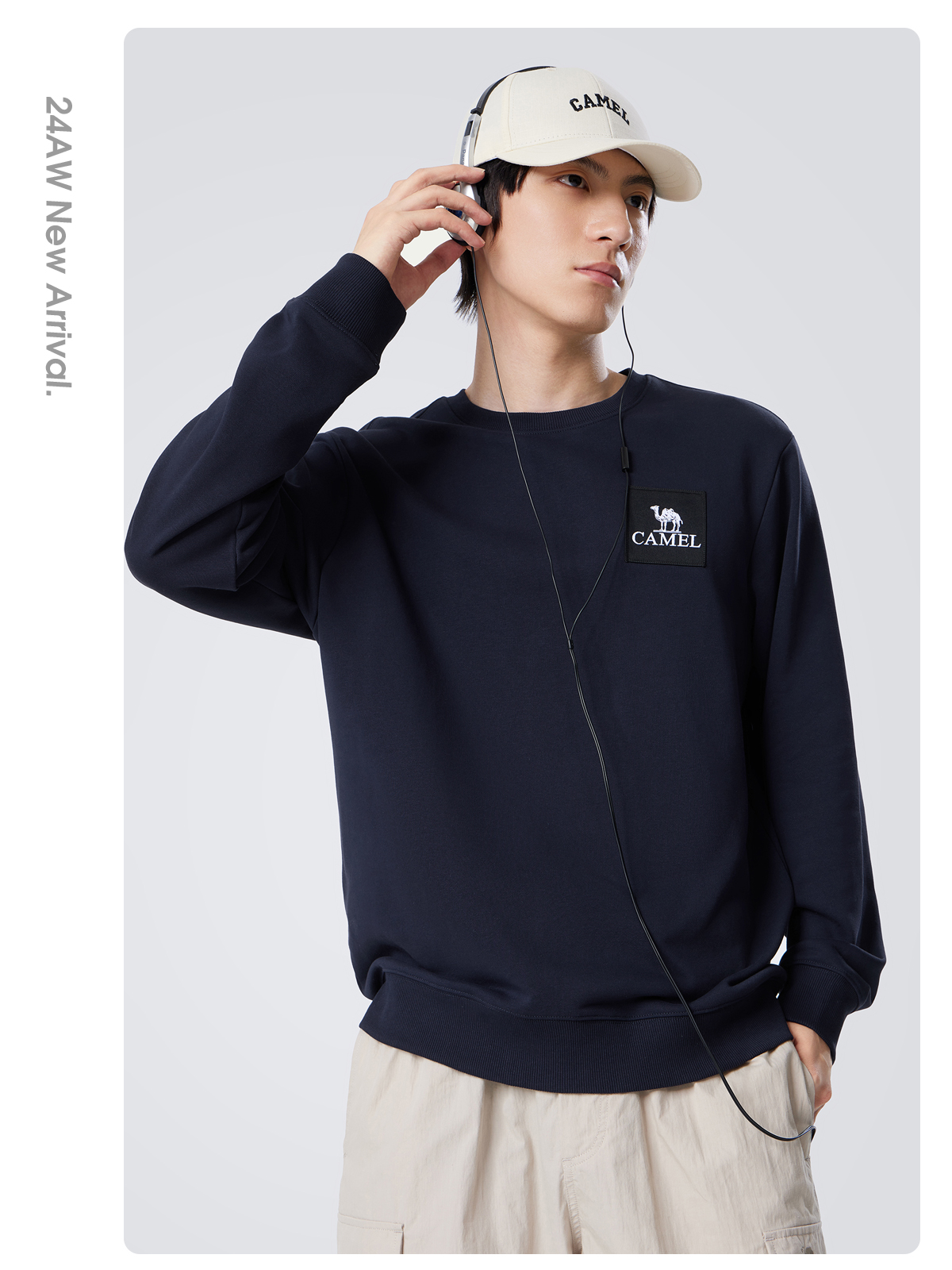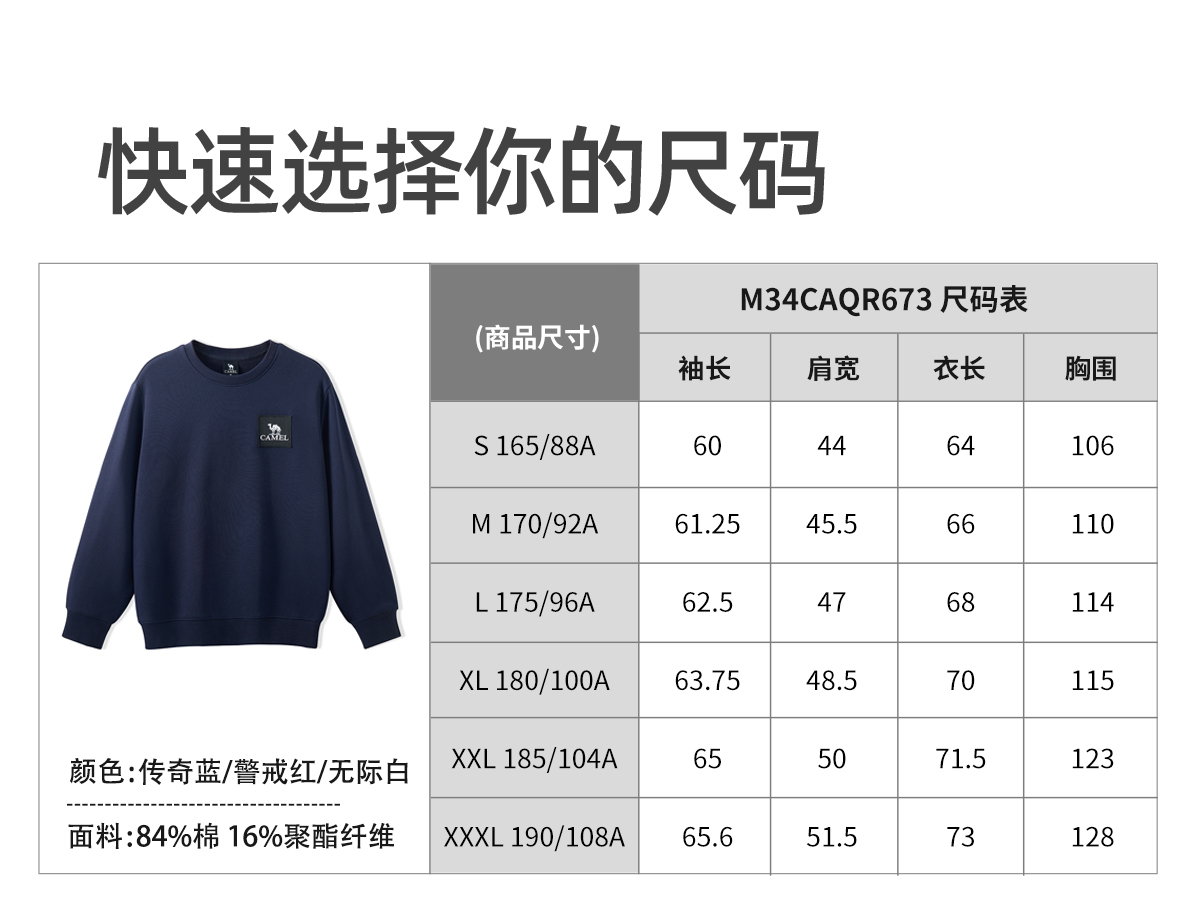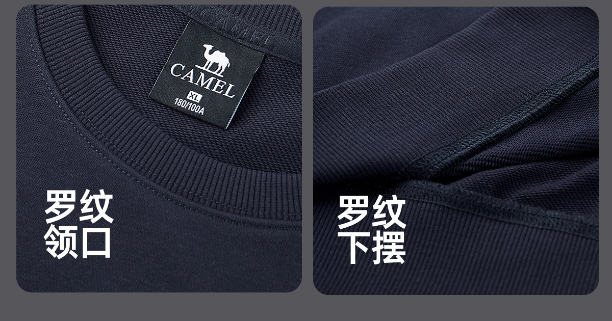 骆驼男装圆领卫衣男春秋季2024新款宽松纯色长袖t恤上衣打底衫 M34CAQR673