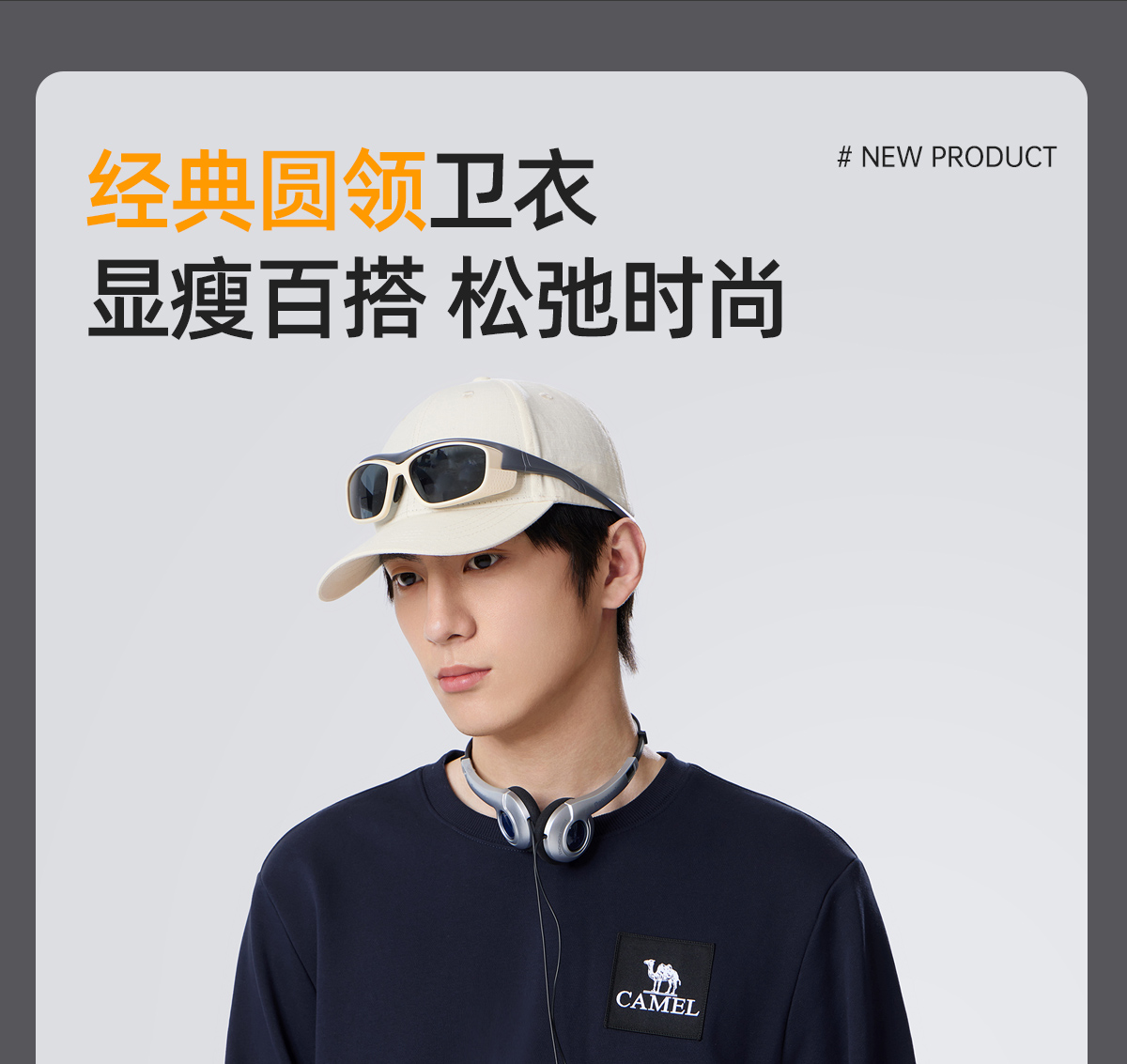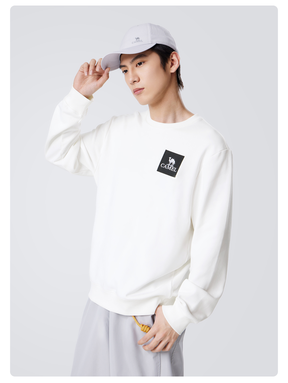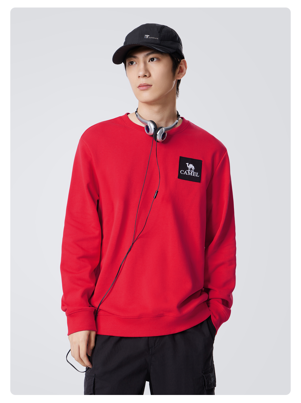 骆驼男装圆领卫衣男春秋季2024新款宽松纯色长袖t恤上衣打底衫 M34CAQR673