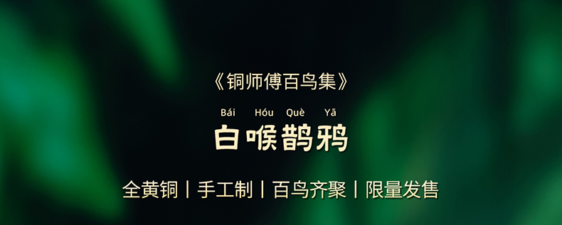 铜师傅《铜师傅百鸟集》之白喉鹊鸦 客厅桌面铜摆件 家居工艺品
