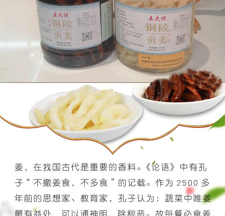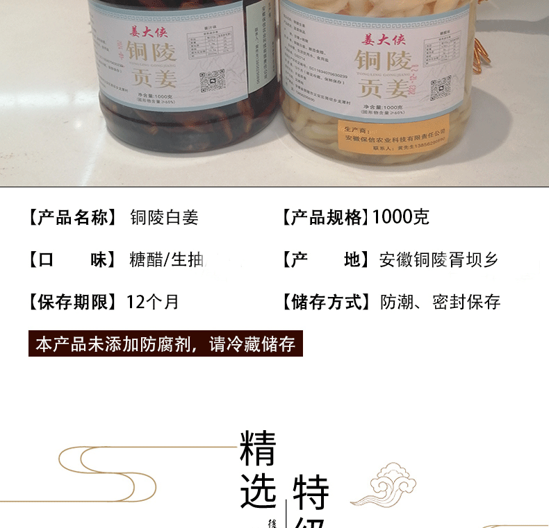 铜陵/白姜/姜大侠/实惠装/1000g*1瓶