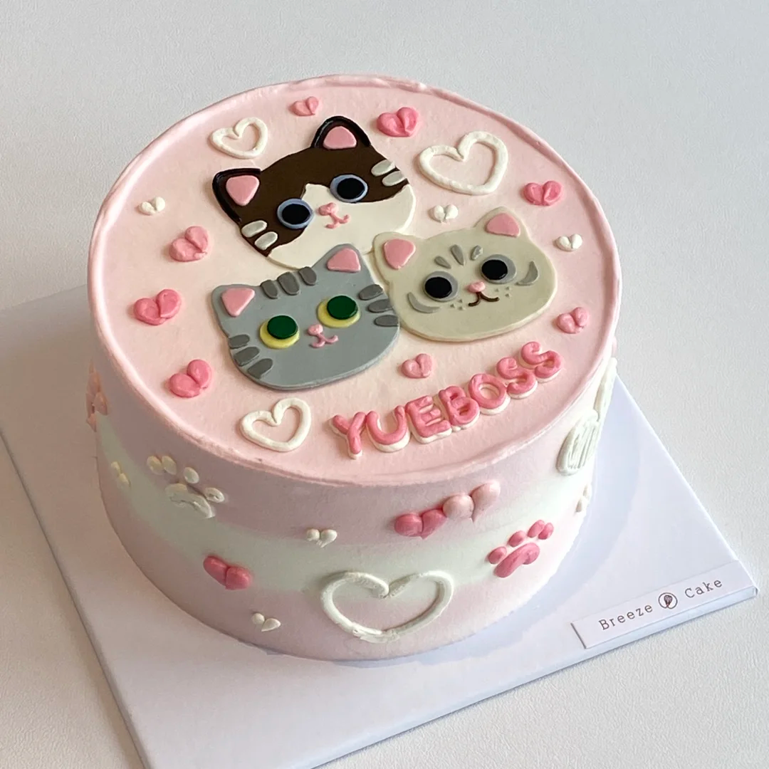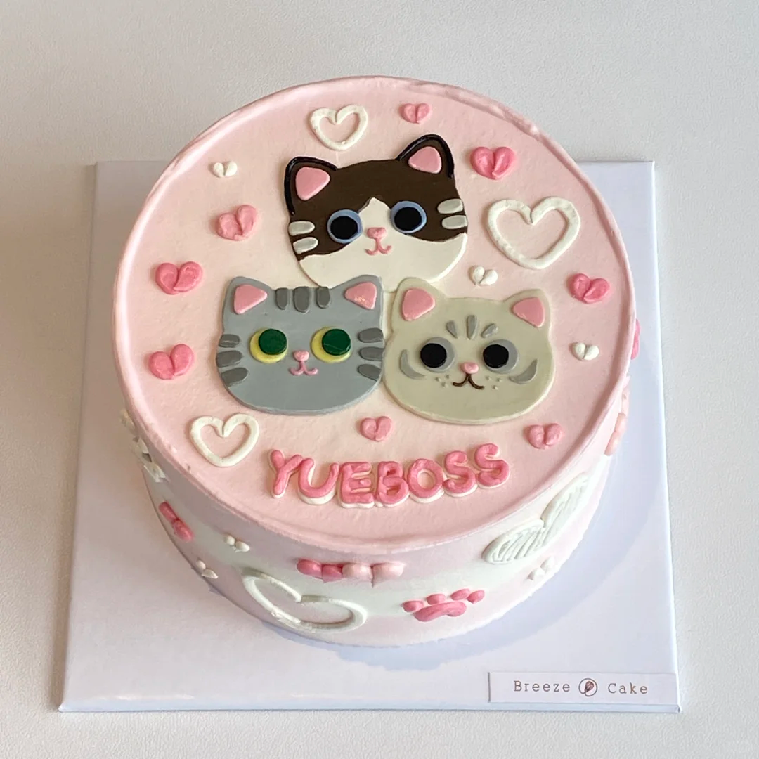 三只小猫小动物卡通手绘蛋糕-低糖处理无添加