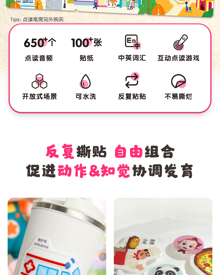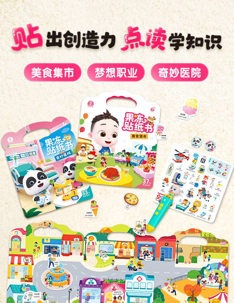 【点读版】3-4岁益智互动 恰恰&奇妙果冻贴纸书套装/3册 (不含笔)