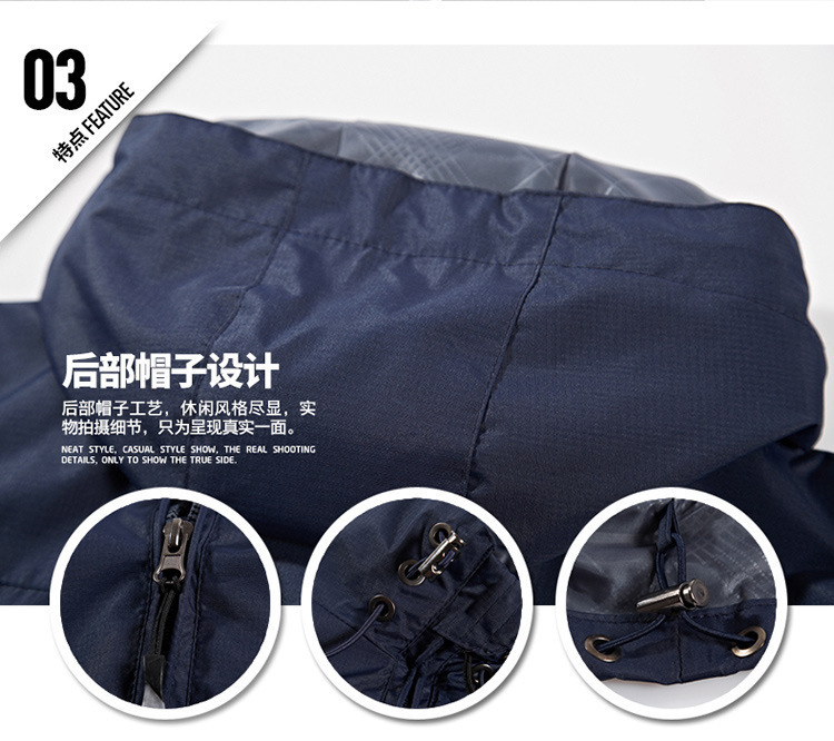 跨境夹克男春秋薄款单层冲锋衣连帽风衣外套防风防水户外登山服潮