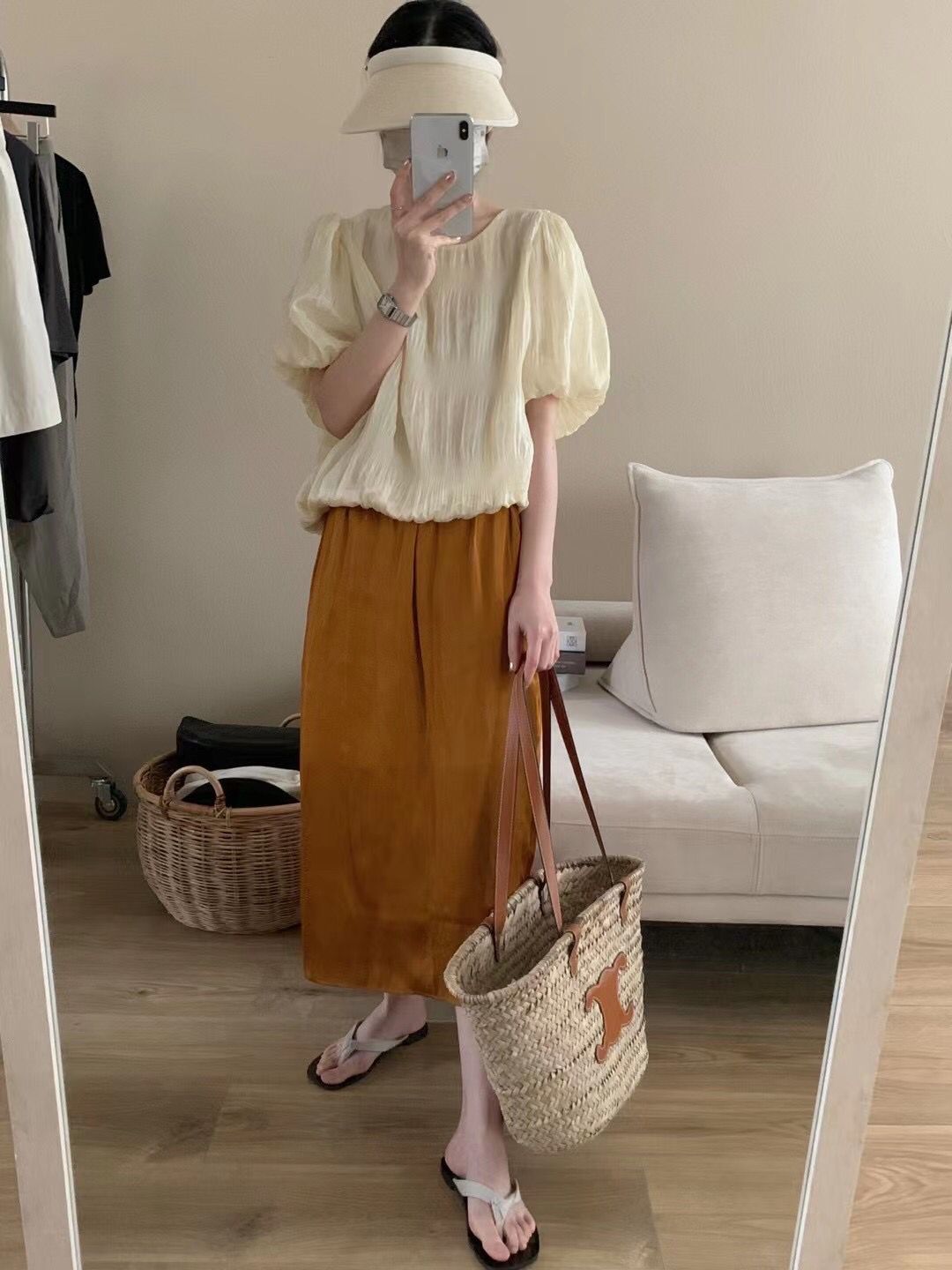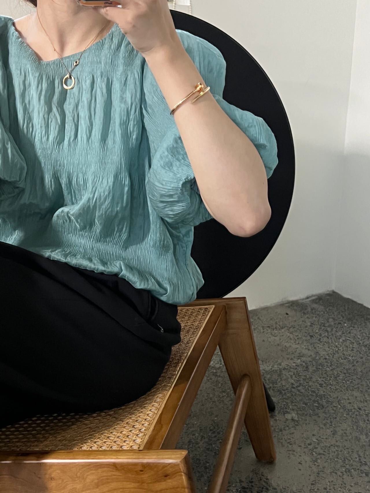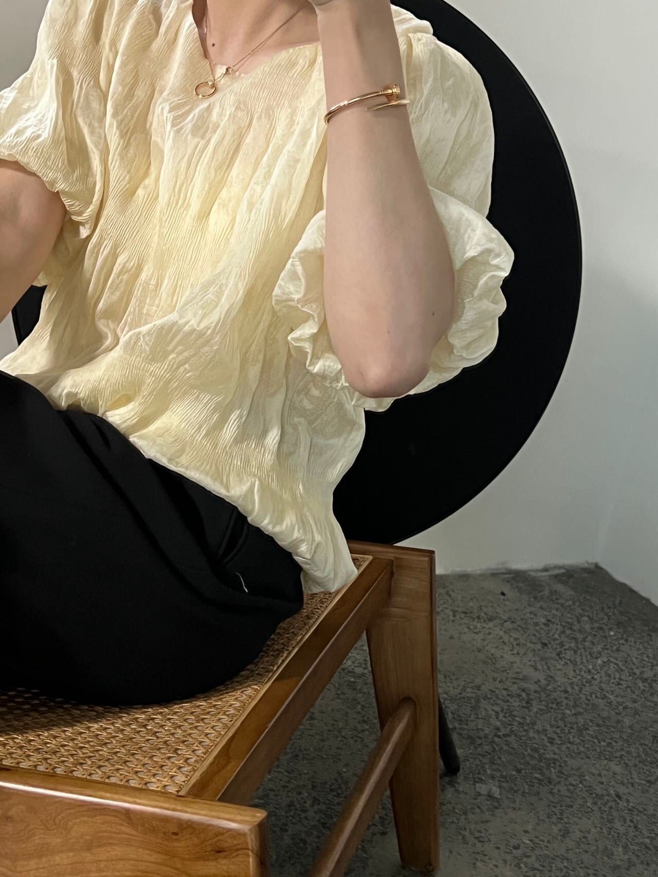 雪纺布料穿在身上真的超舒服尤其是夏天,又丝滑又清爽,乖巧的泡泡袖和小圆领都增加了可爱感~不挑身材百搭款 可以搭配一切的一款王者上衣。我每年夏天都要入几件雪纺的衣衣~~