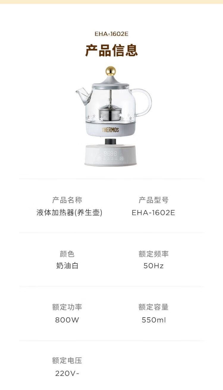 膳魔师液体加热器-养生壶(奶油白)EHA-1602E