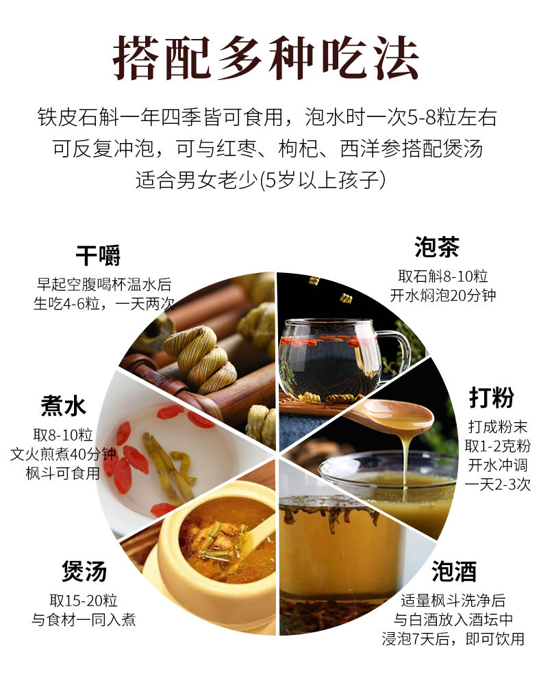 《神农本草经》将铁皮石斛列为具有“轻身延年”作用的圣药。现代药理学研究证实,铁皮石斛含有多种微量元素,与人体的健康长寿有密切关系,对人体的抗衰老作用比一般的药物更广泛、更全面。