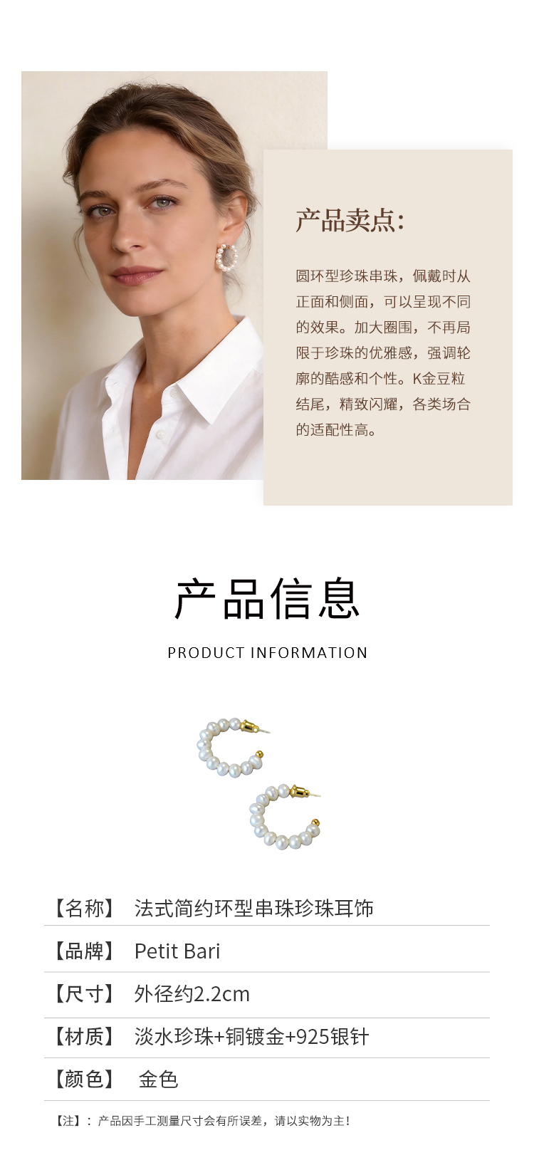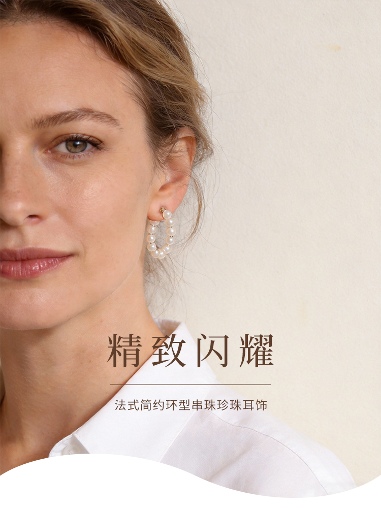 【2件9折】【Petit Bari】法式简约环型串珠珍珠耳饰(外径约2.2cm)