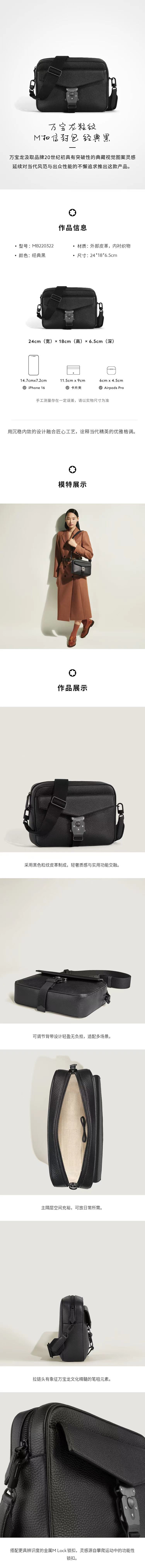 这款信封包采用柔软的黑色粒纹皮制成,正面配有4810M扣。设有1个宽敞的主隔层,翻盖下设有1个方便取用的前袋,1个内部开口袋,便于收纳随身物品。可个性定制正面锁扣,打造您的专属包袋可调节可拆卸肩带舒适百搭。