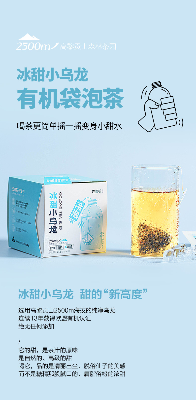 【2021年金奖】吉普号 有机认证 冰甜小乌龙冷泡茶 三角原叶袋泡 高山乌龙茶 10包/盒(京东天猫同款)