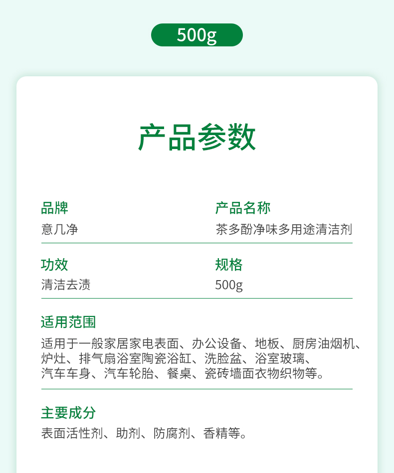 【自营】 意几净茶多酚净味多用途清洁剂500g