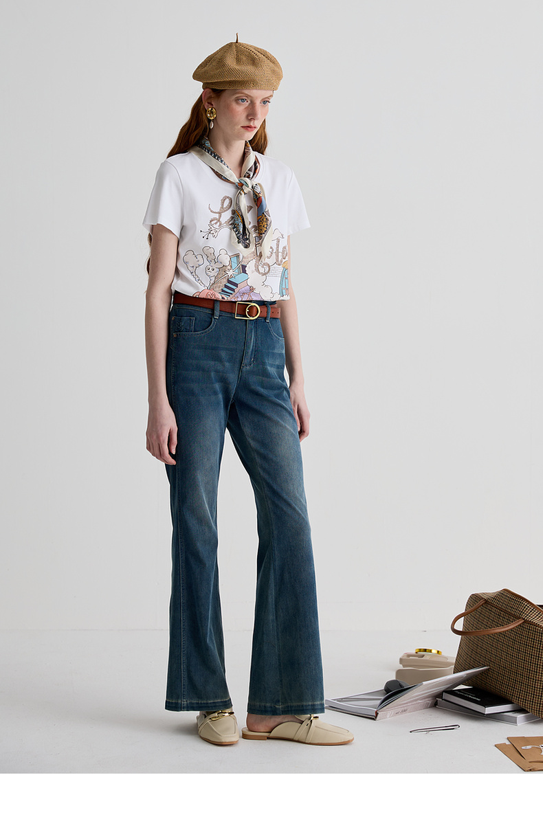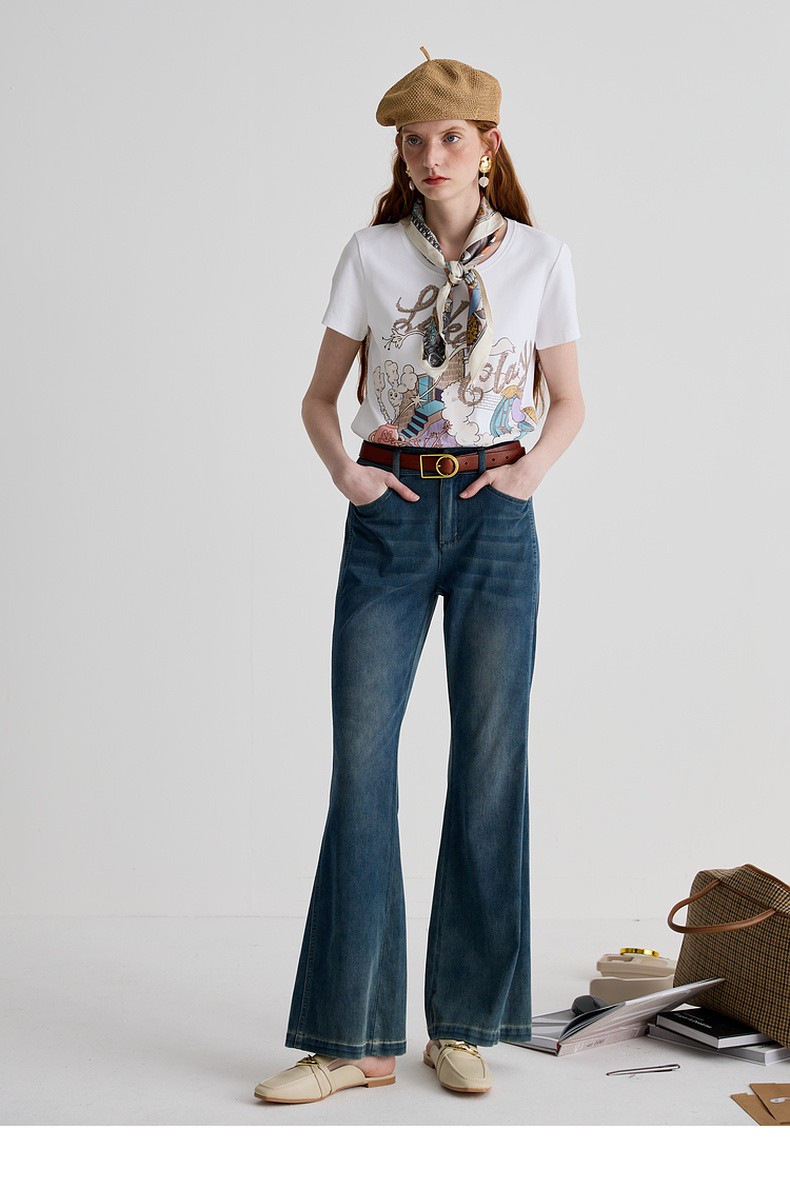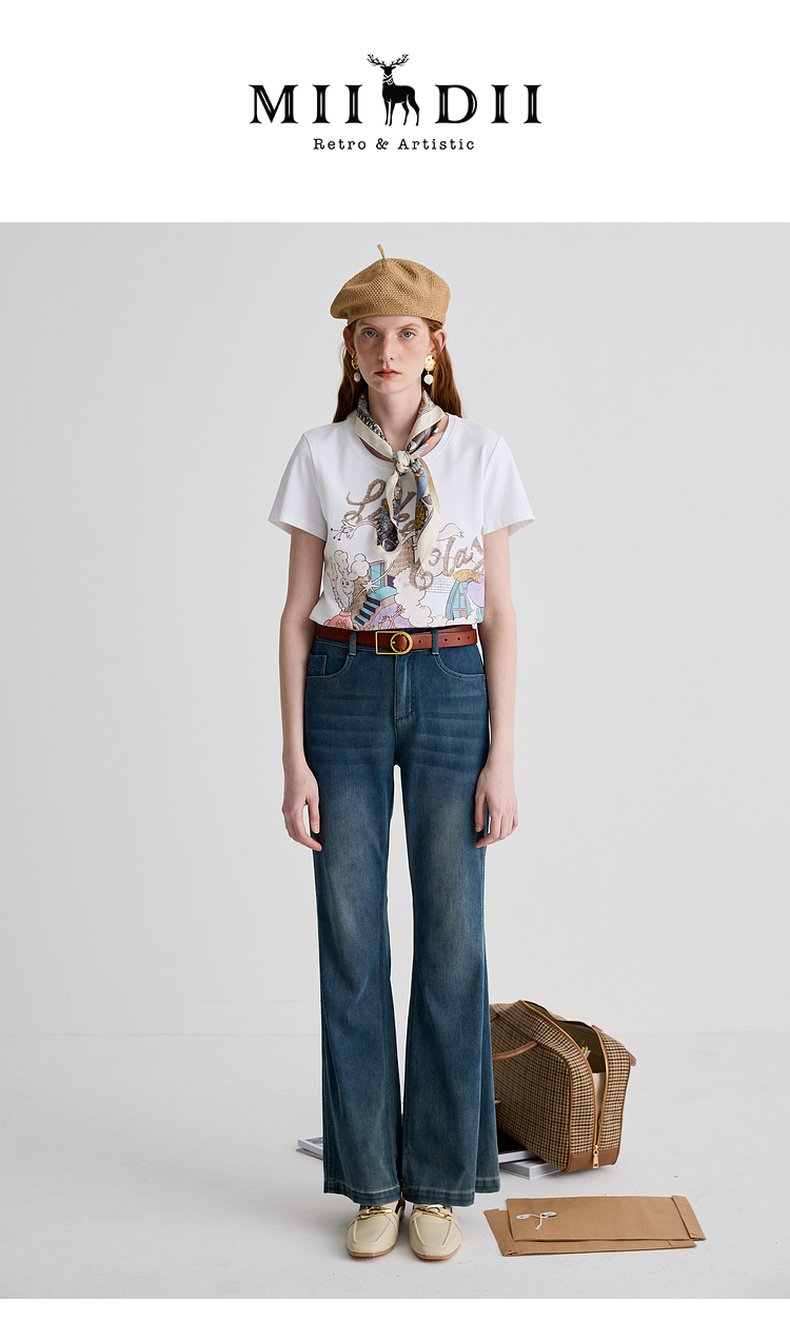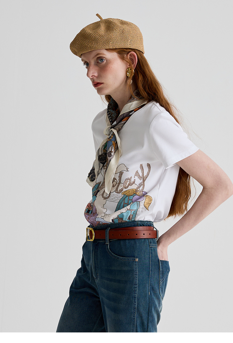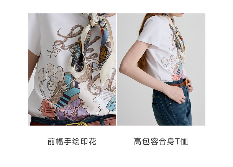 谜底T恤短袖女2025夏新品休闲日常印花合身X型中长上衣252MT0624