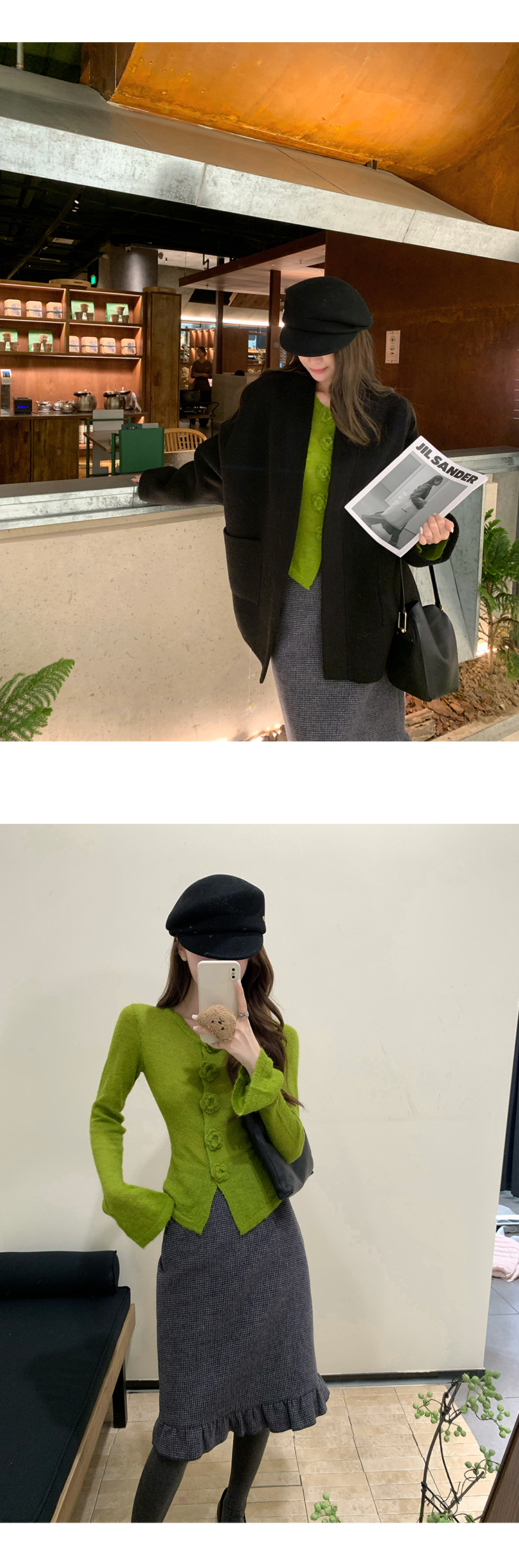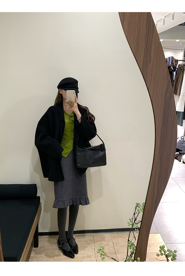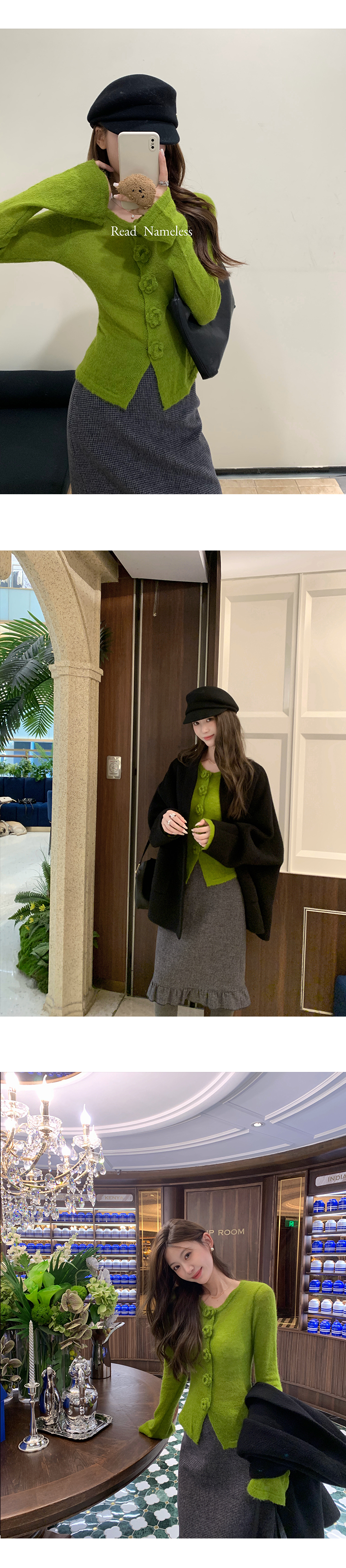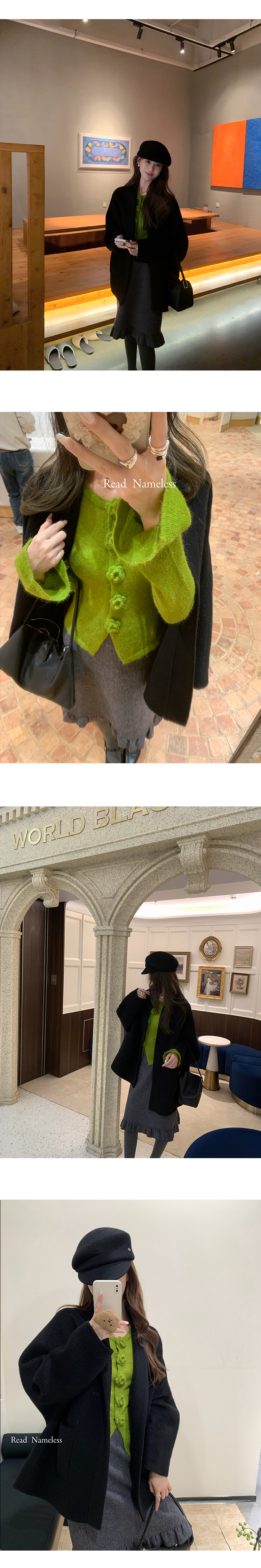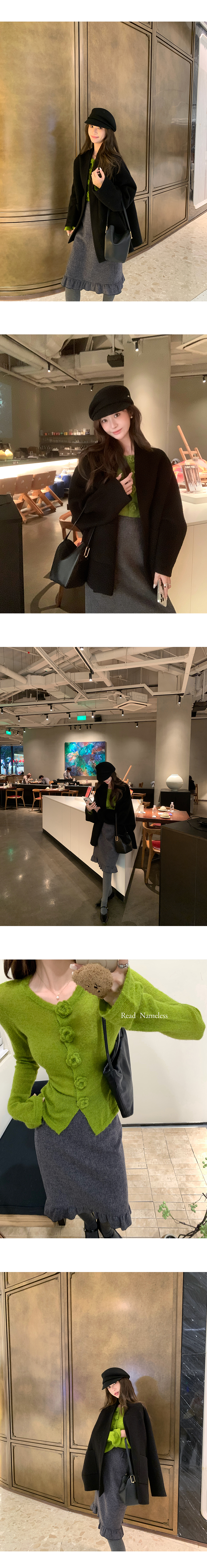 Read Nameless /黑色高货100%骆驼绒双面呢+牛油果绿显白花朵针织衫 2025/11/8