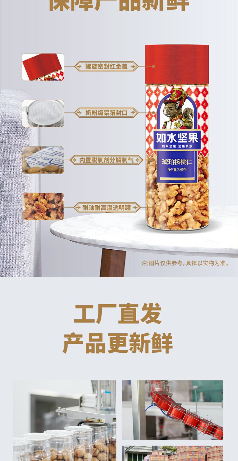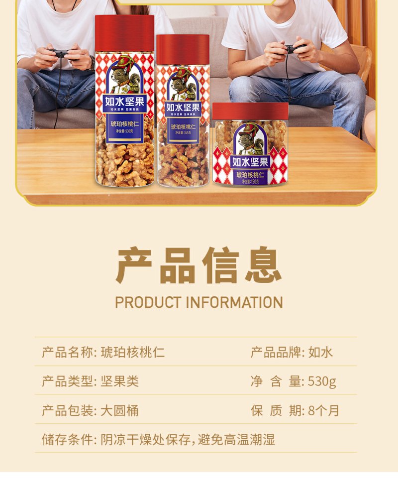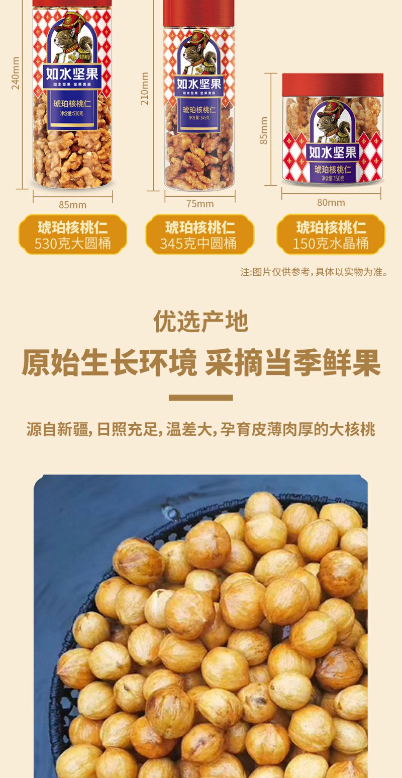 如水 琥珀核桃仁 核桃仁坚果干果休闲零食 530g/桶