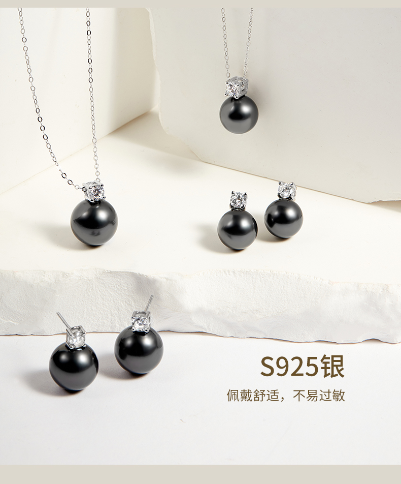 优选丨T400 坠链均925银仿珍珠 王妃系列 大溪地黑铂金灰色 女项链