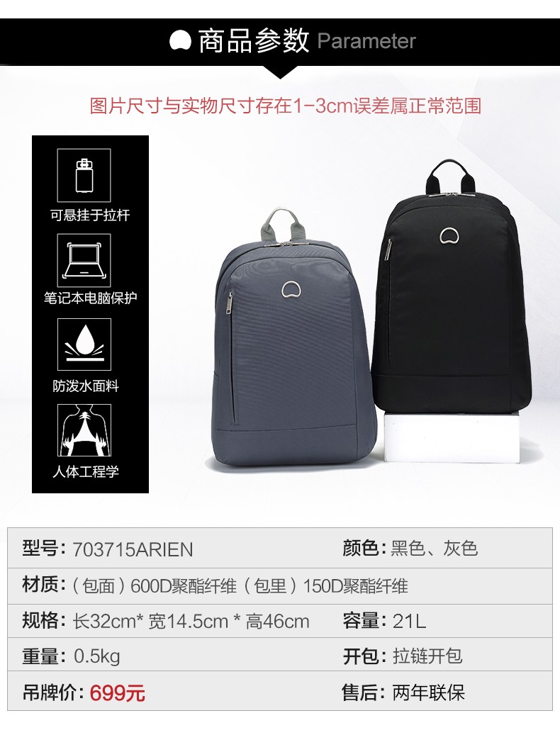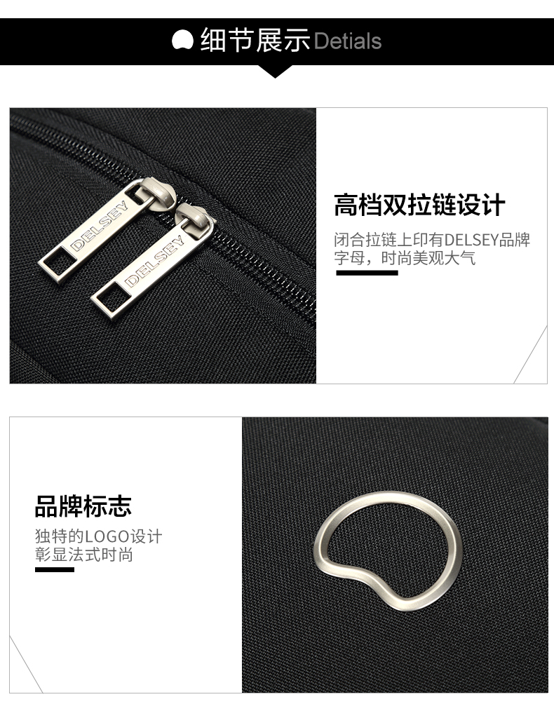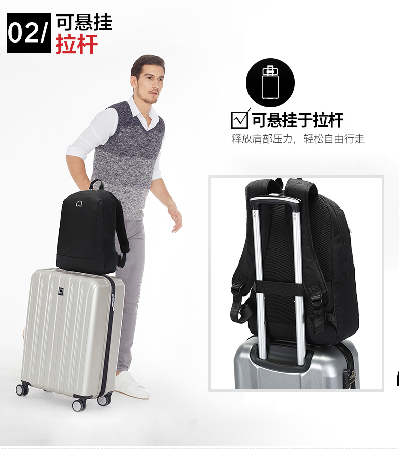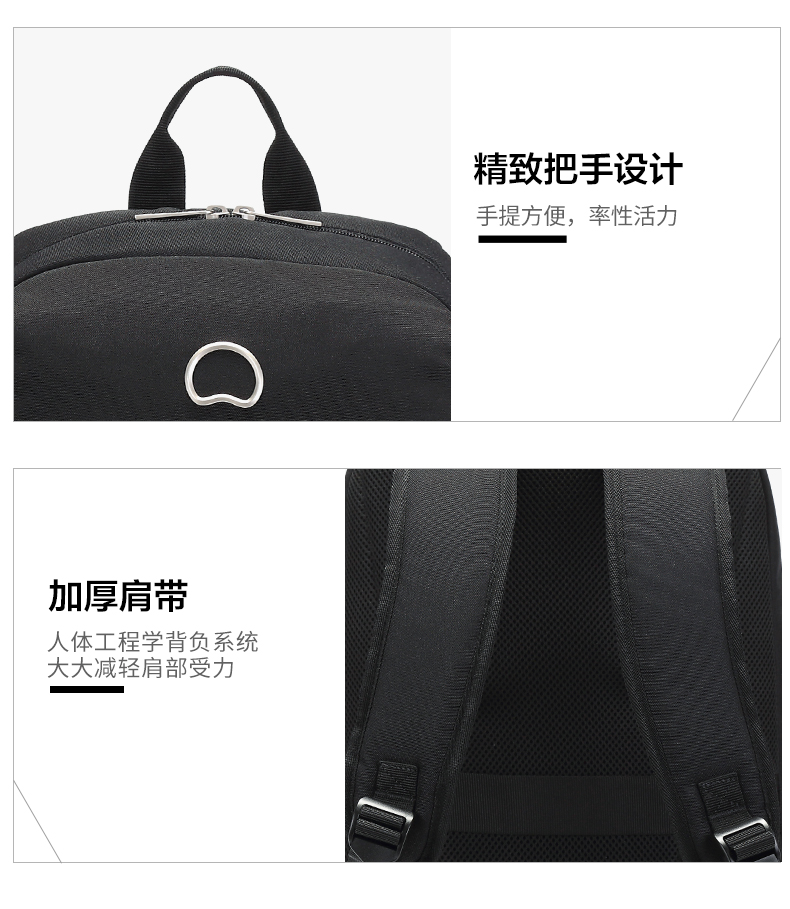 DELSEY原法国大使 商务式电脑背包 内部智能装配夹层大容量双肩包3715 黑色